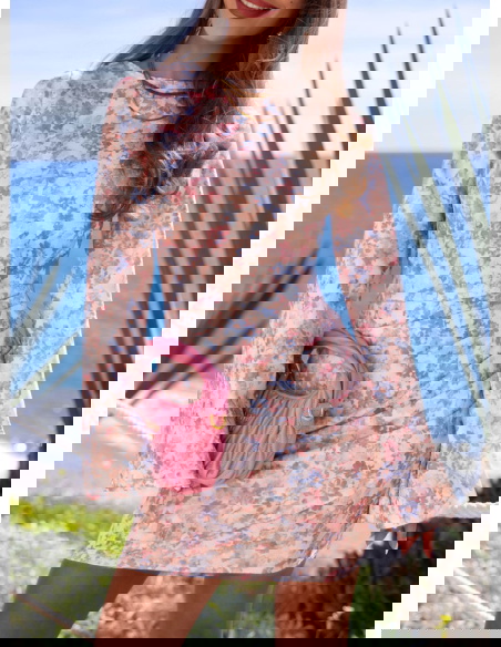 Sukienka mini w kwiaty z szerokimi rękawami Lucetta - N15 -