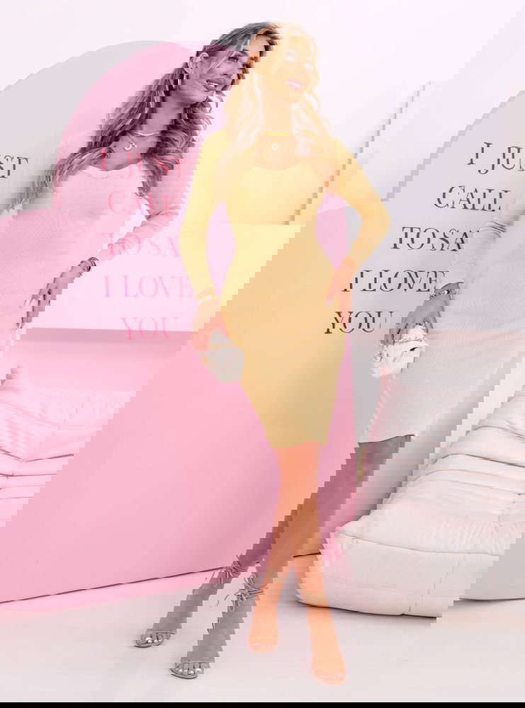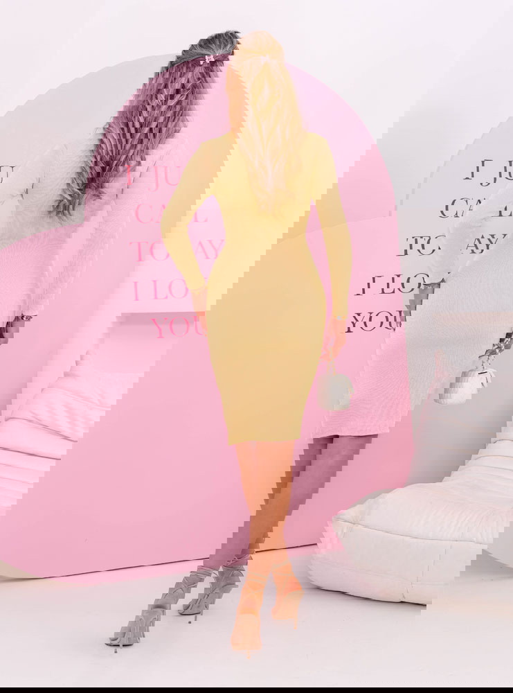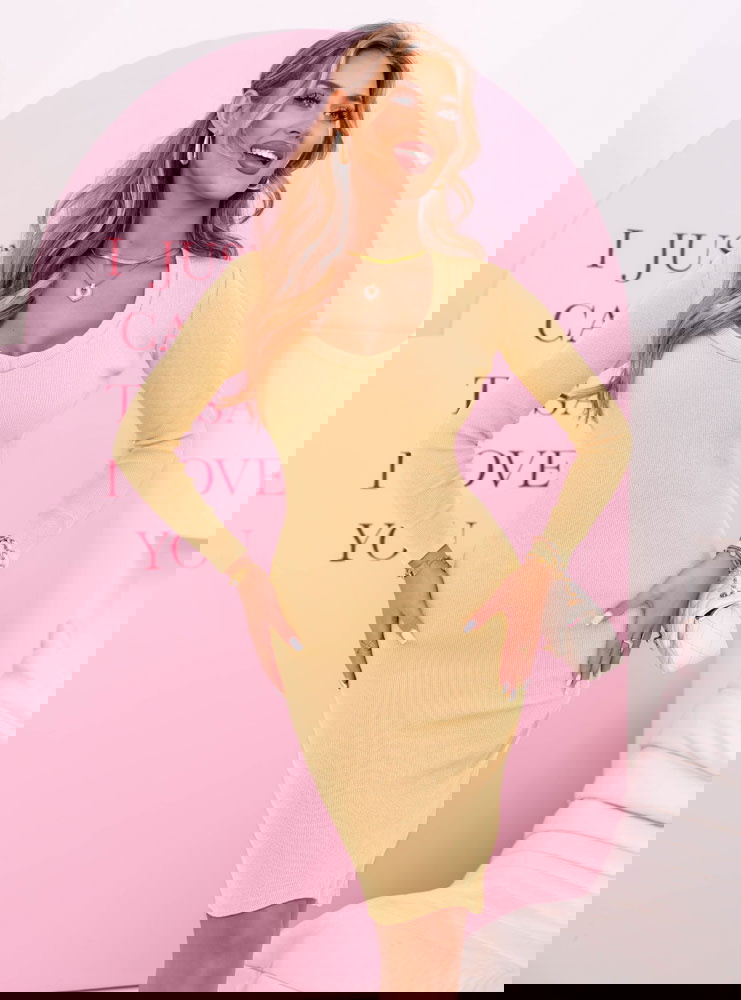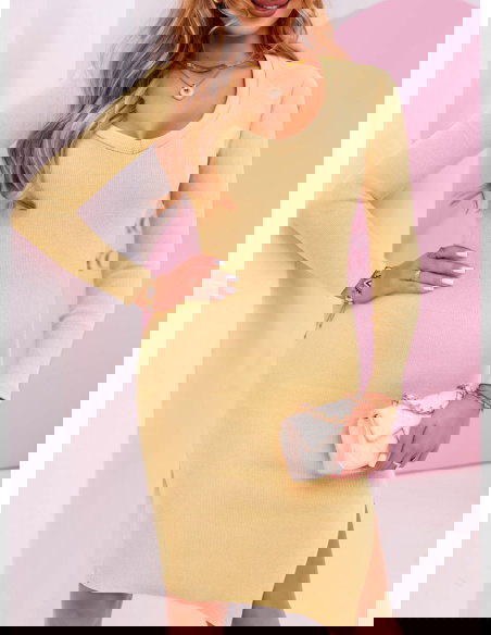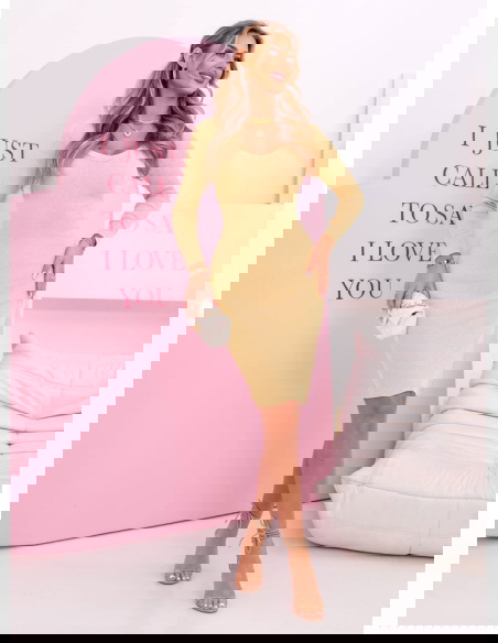 Prążkowana dopasowana sukienka z dekoltem w serek Corene - masełkowa