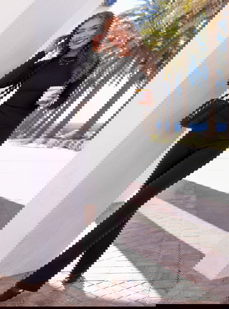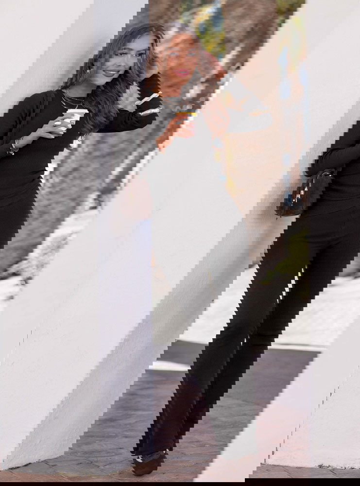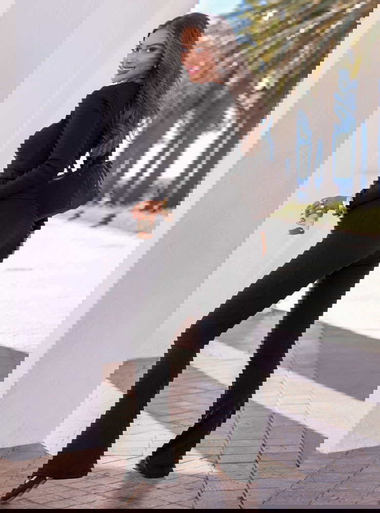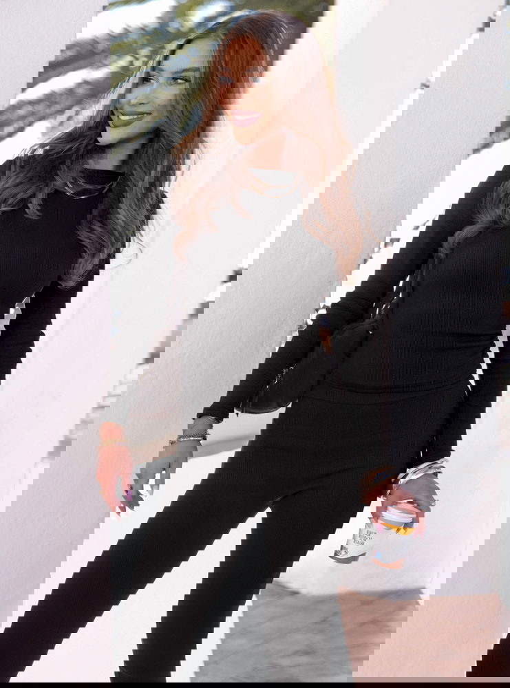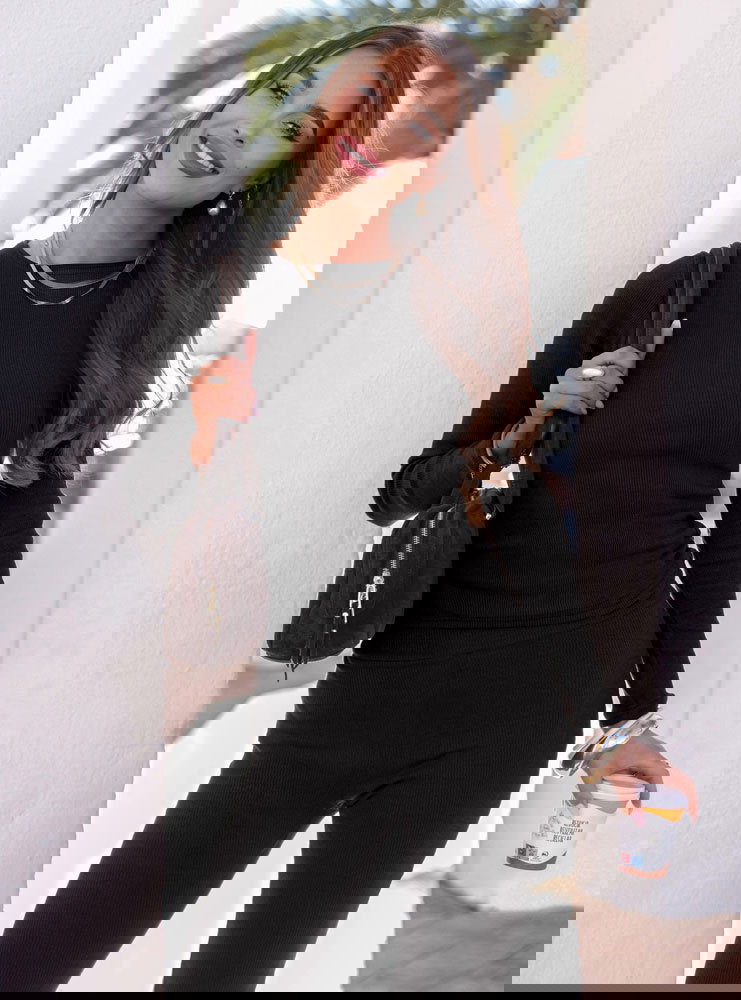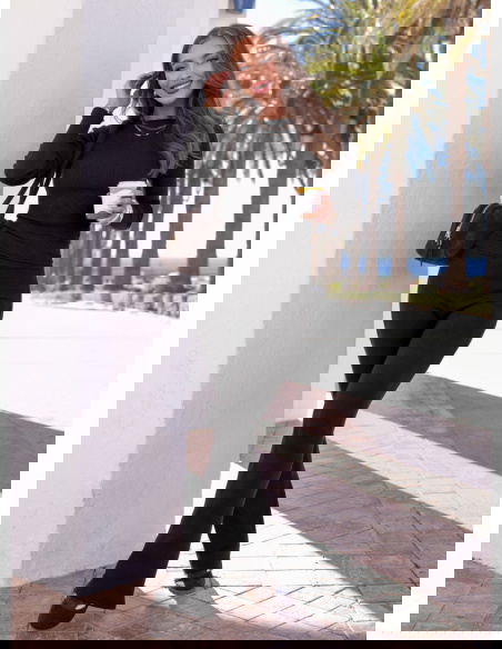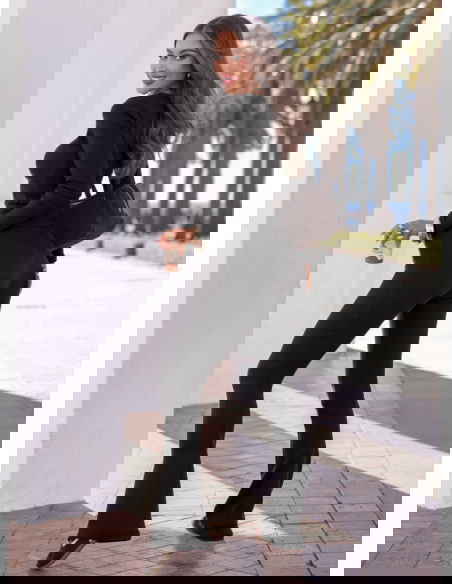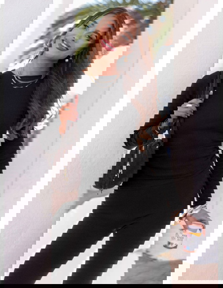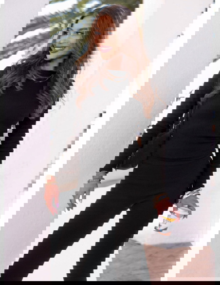 Czarny prążkowany komplet dopasowana bluzka i spodnie Navienne
