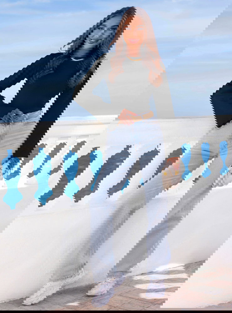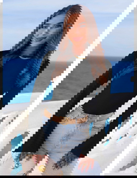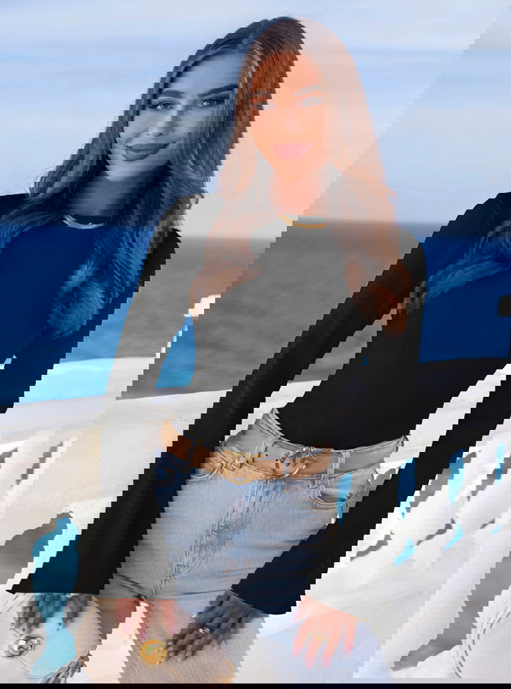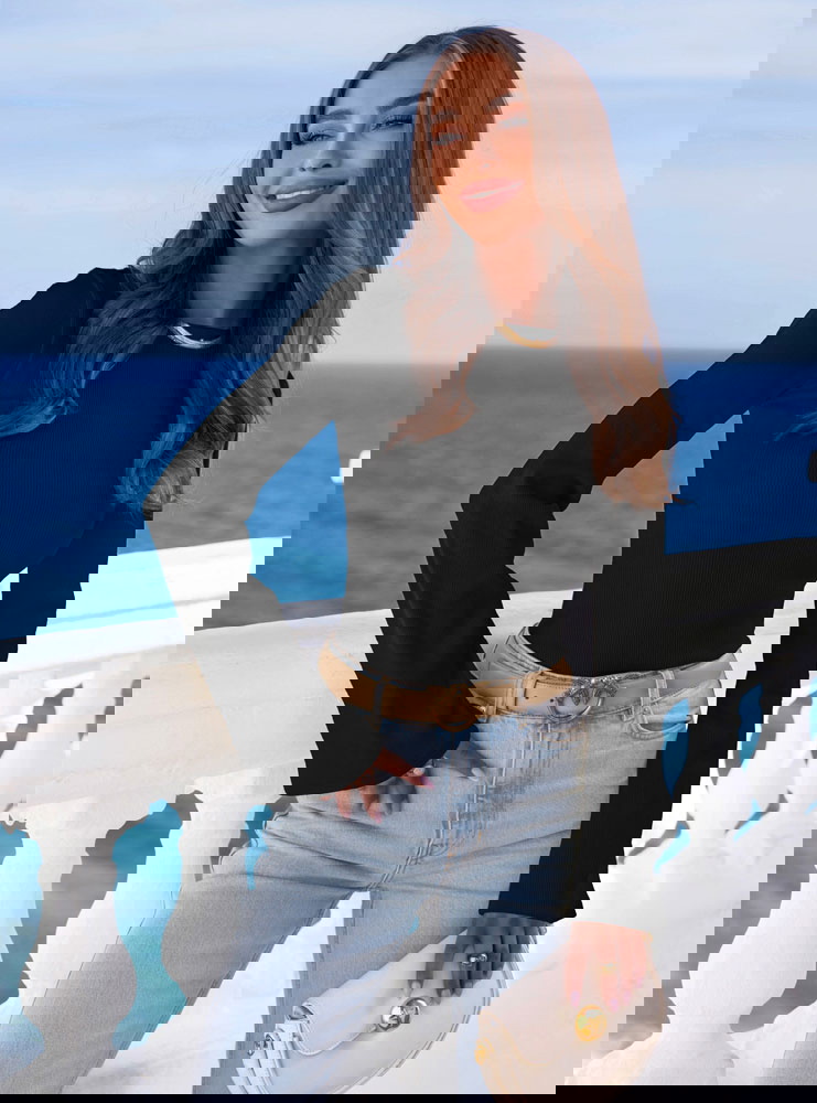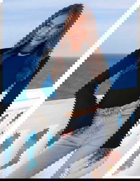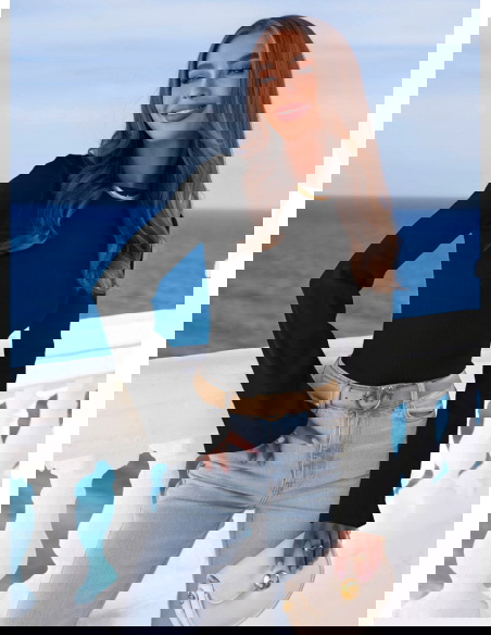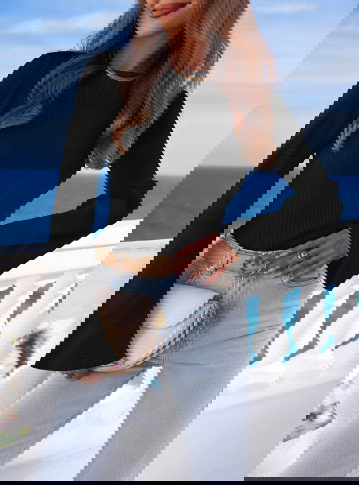 Czarna prążkowana bluzka z rozszerzanym rękawem Joelliane