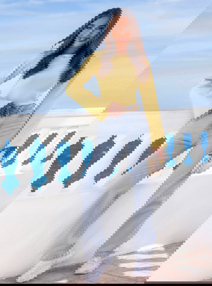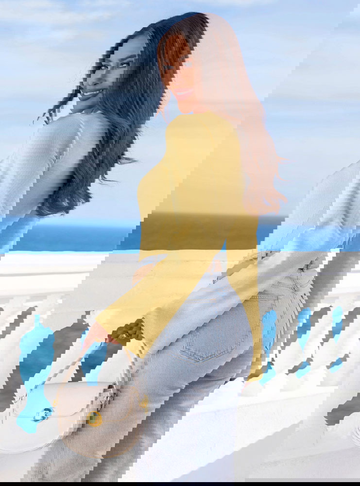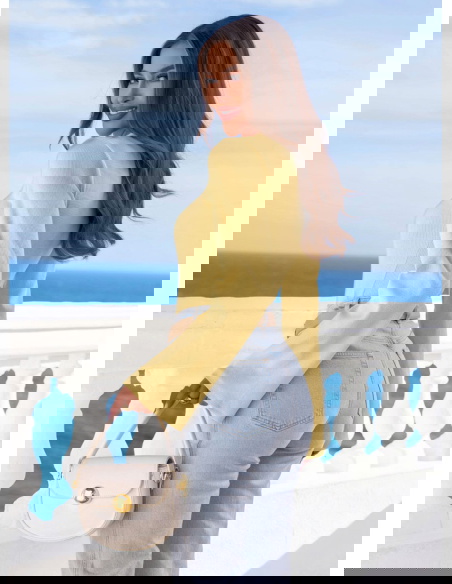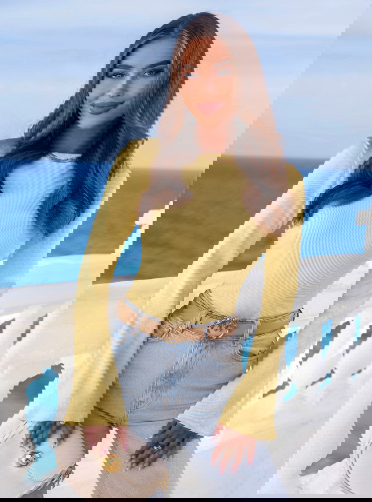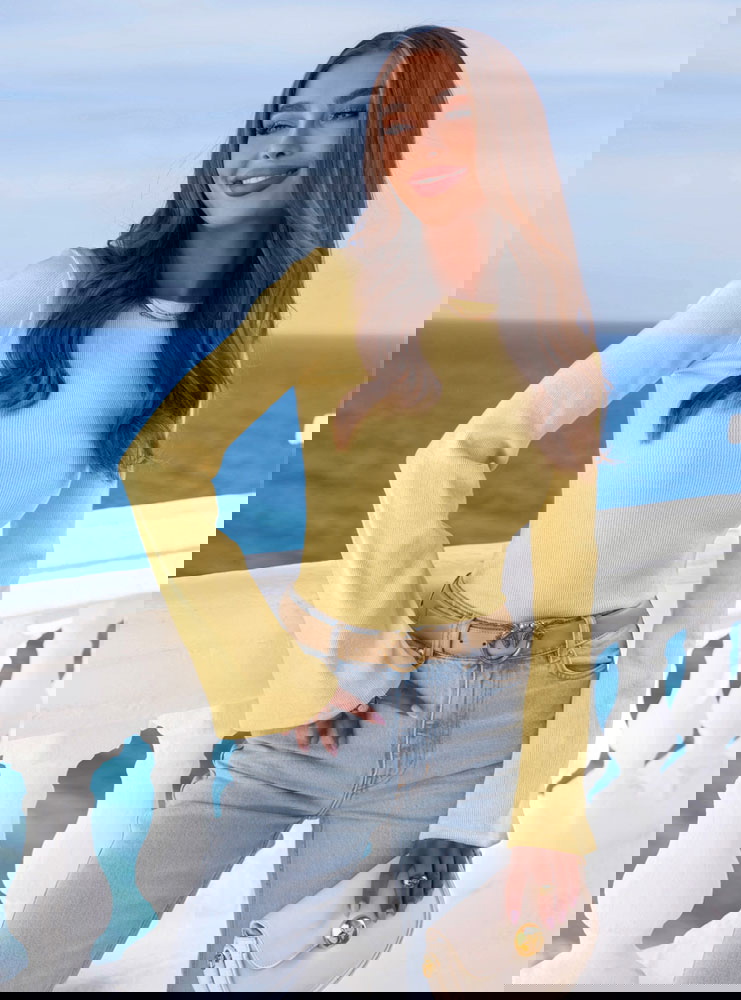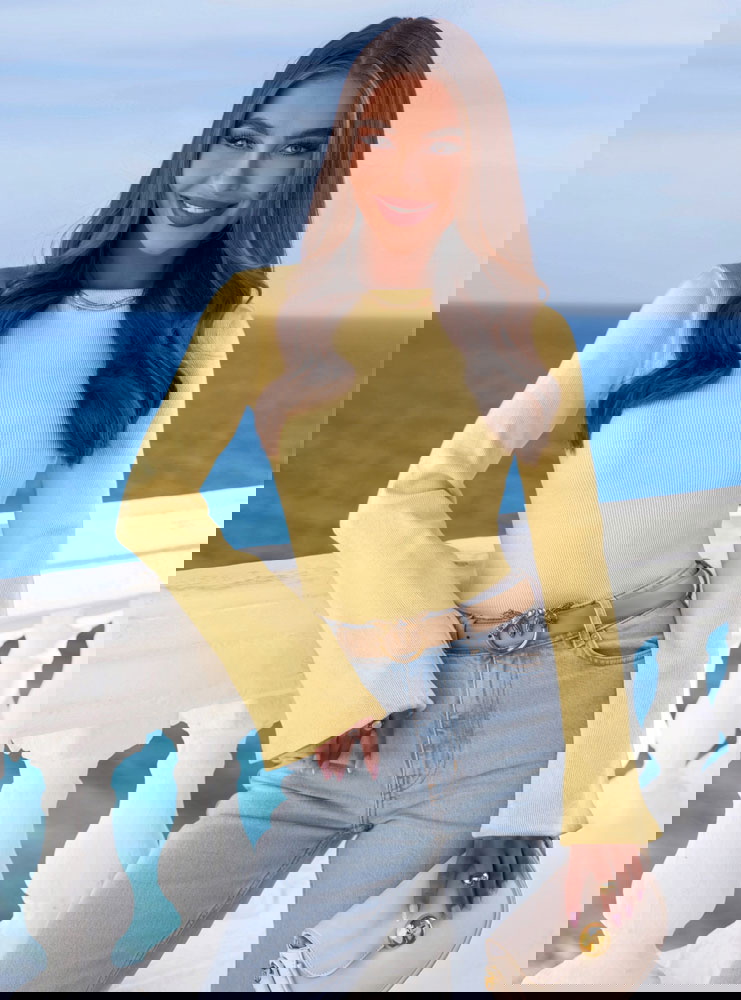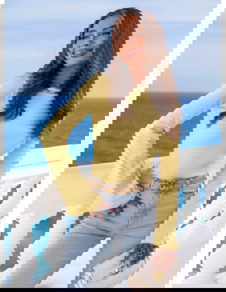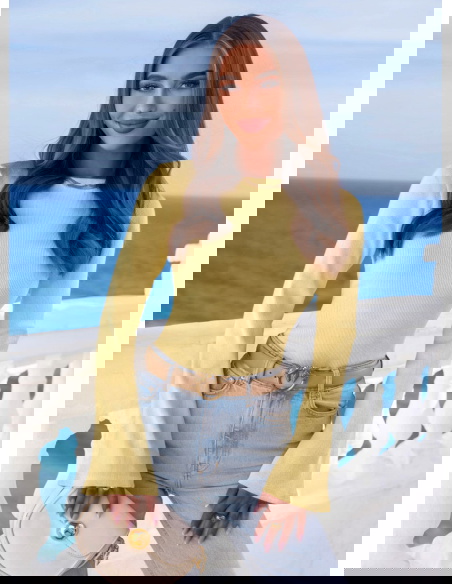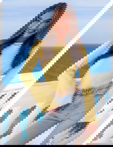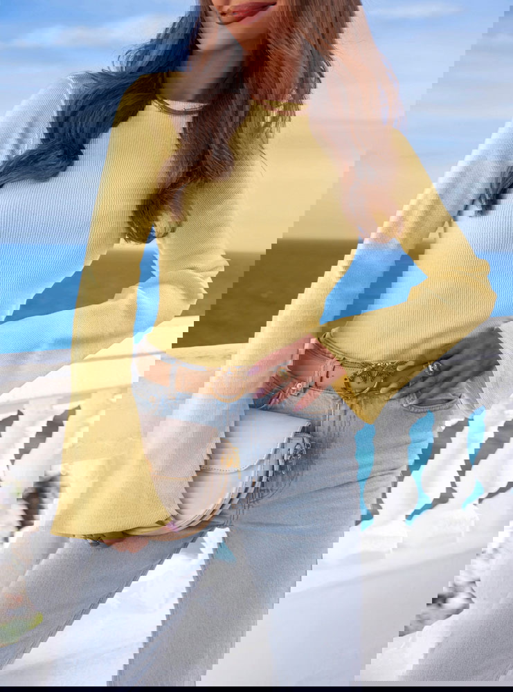 Prążkowana bluzka z rozszerzanym rękawem Joelliane - masełkowa