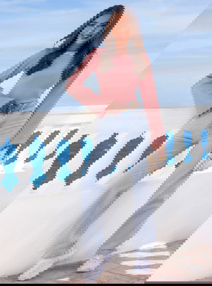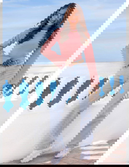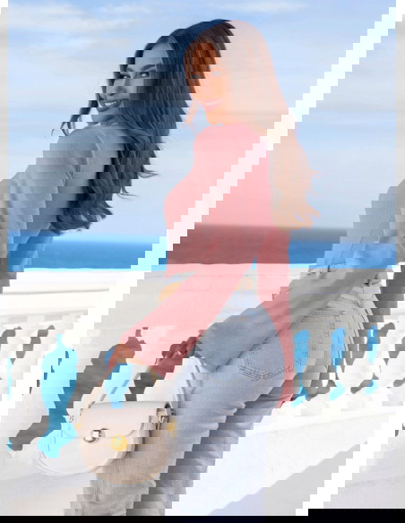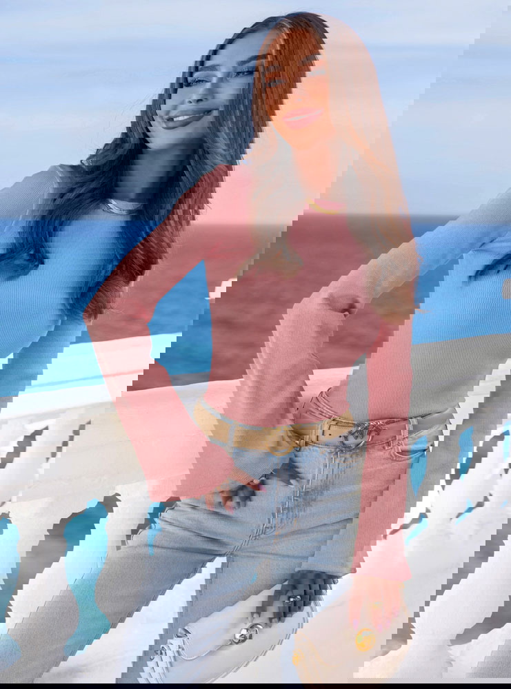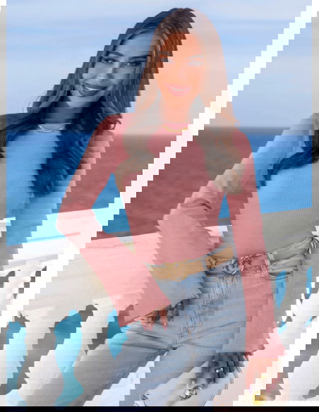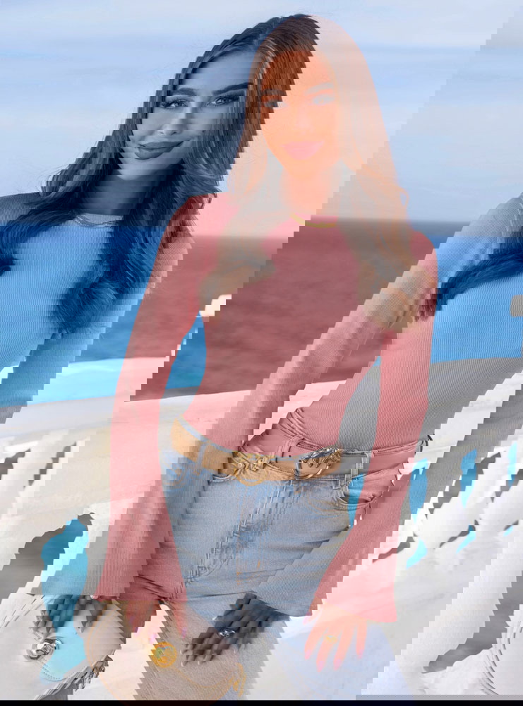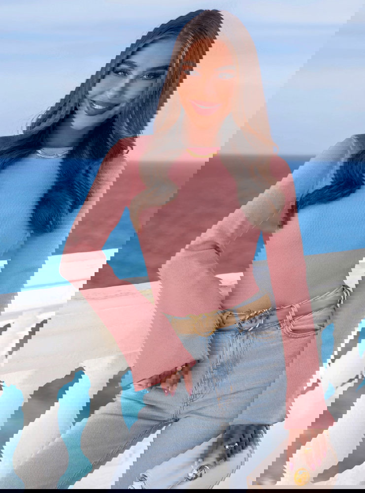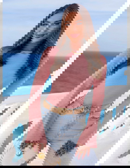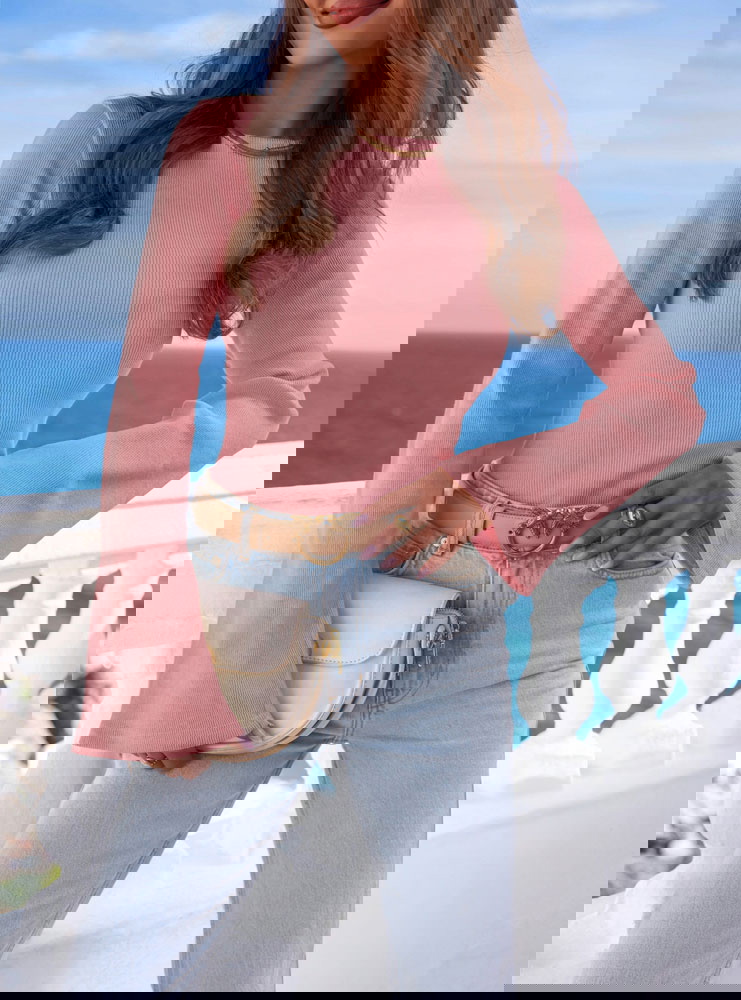 Prążkowana bluzka z rozszerzanym rękawem Joelliane - brudny róż