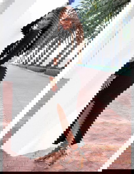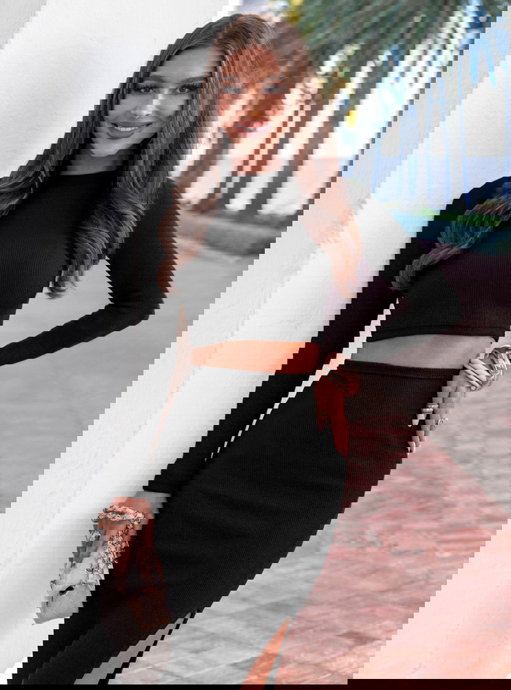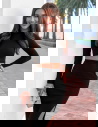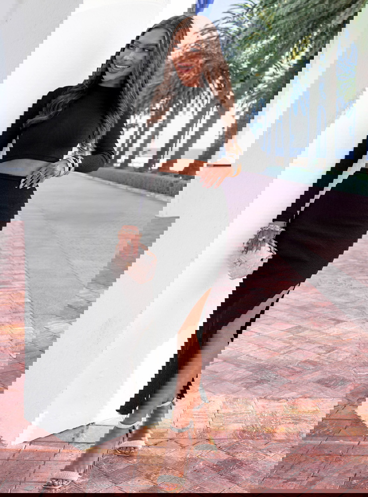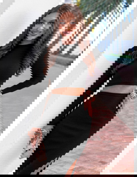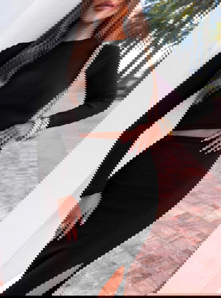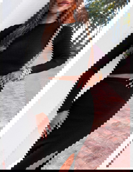 Czarny prążkowany komplet top+spódnica z rozcięciem Kasyleen