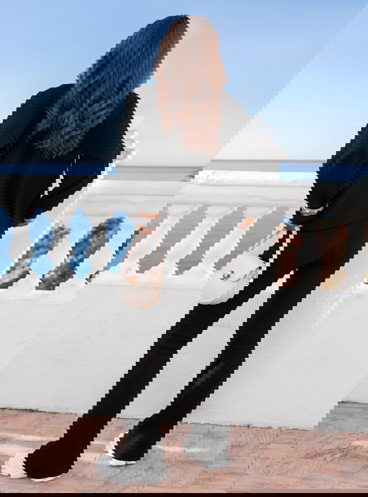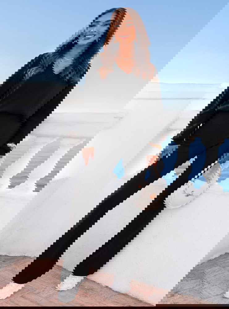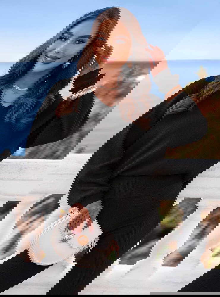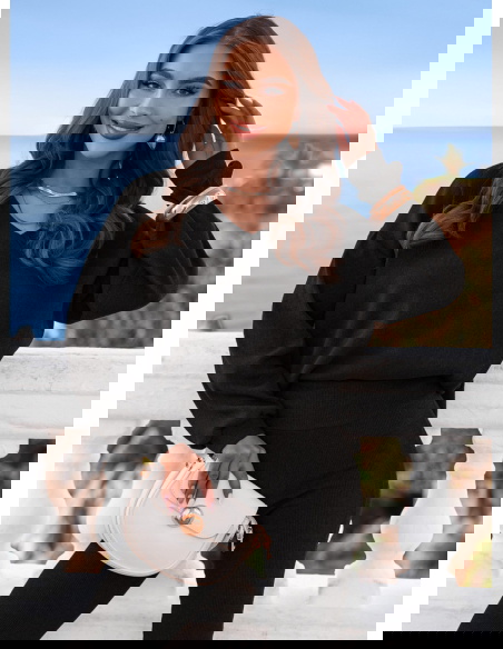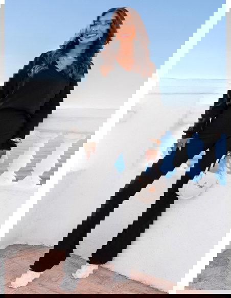 Czarny prążkowany komplet bluzka z dekoltem w serek i spodnie Nellwyn