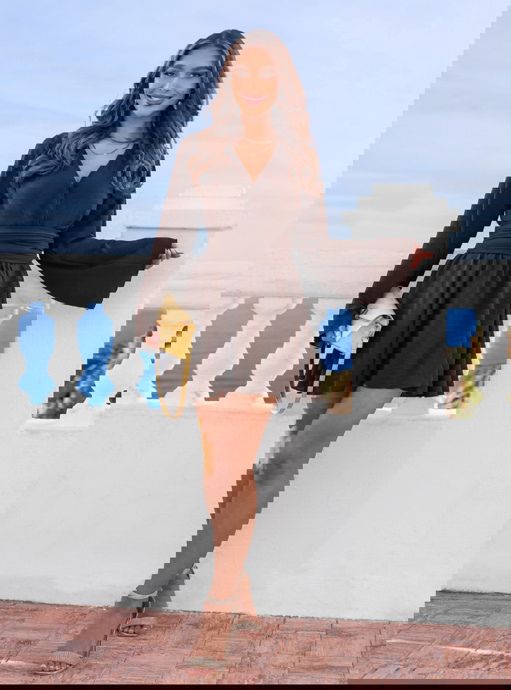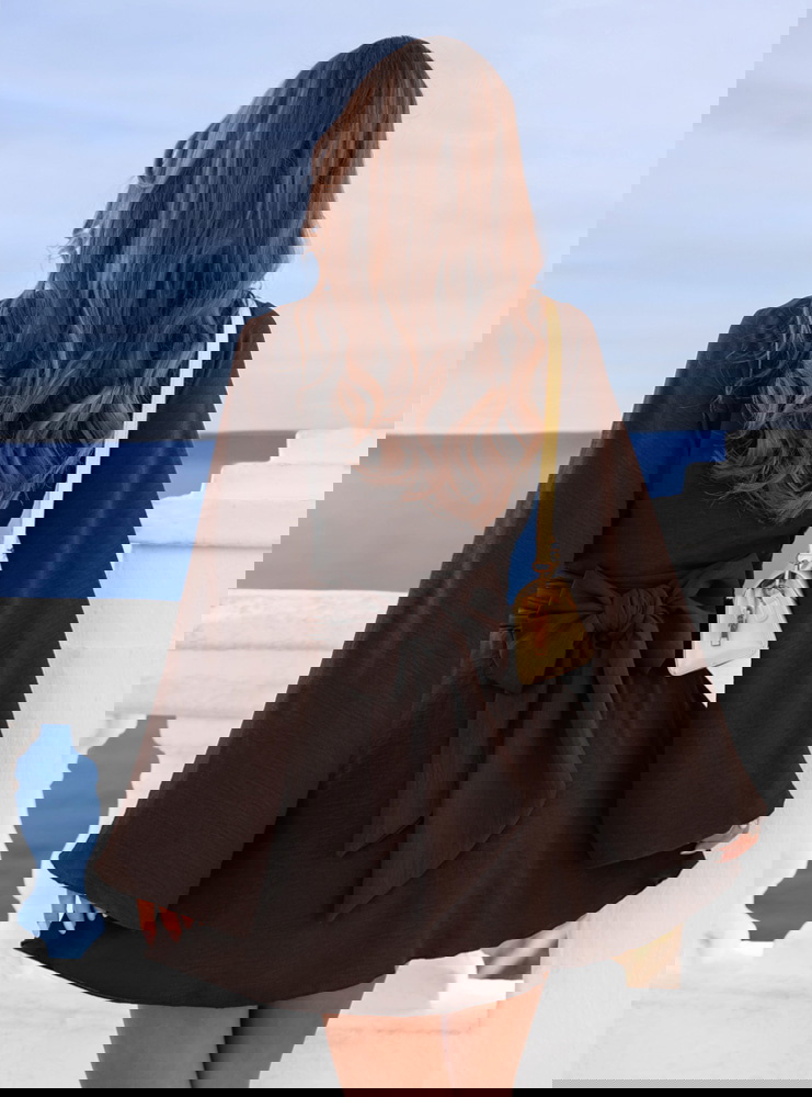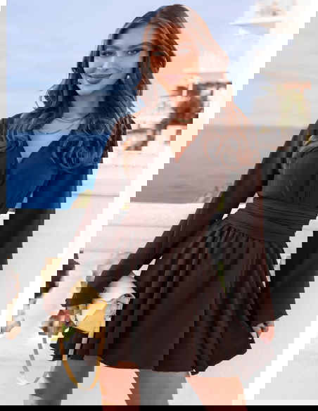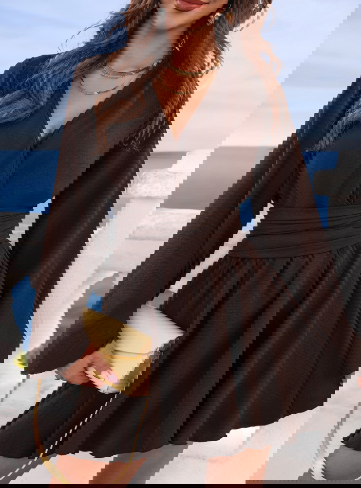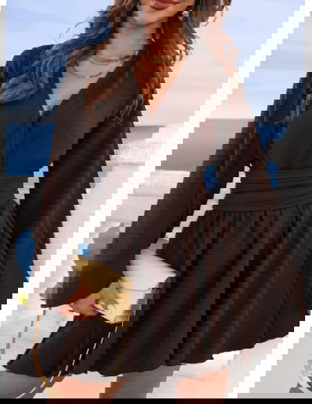 Czekoladowy kombinezon jak sukienka z przekładanym dekoltem Veradeane