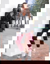 Dopasowany krój, wysoki stan i głęboki bordowy odcień tworzą model, który podkreśla sylwetkę i pozostaje wygodny w każdej sytuacji.