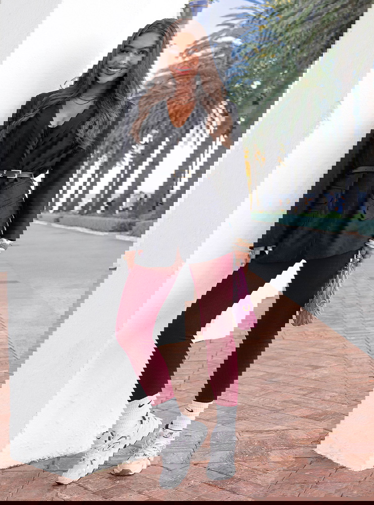 Wysoki stan pomaga podkreślić talię i wizualnie modeluje okolice brzucha. Prążkowana struktura wzmacnia efekt wysmuklenia i nadaje nogom proporcji. Tkanina dobrze kryje i zachowuje swój kształt podczas noszenia. Bordo świetnie łączy się z czernią, beżem, szarością czy bielą, dlatego łatwo wkomponować je w garderobę. To legginsy, które łączą dopasowanie z wygodą i wyraźnym efektem podkreślenia figury.