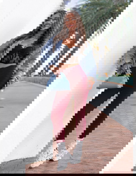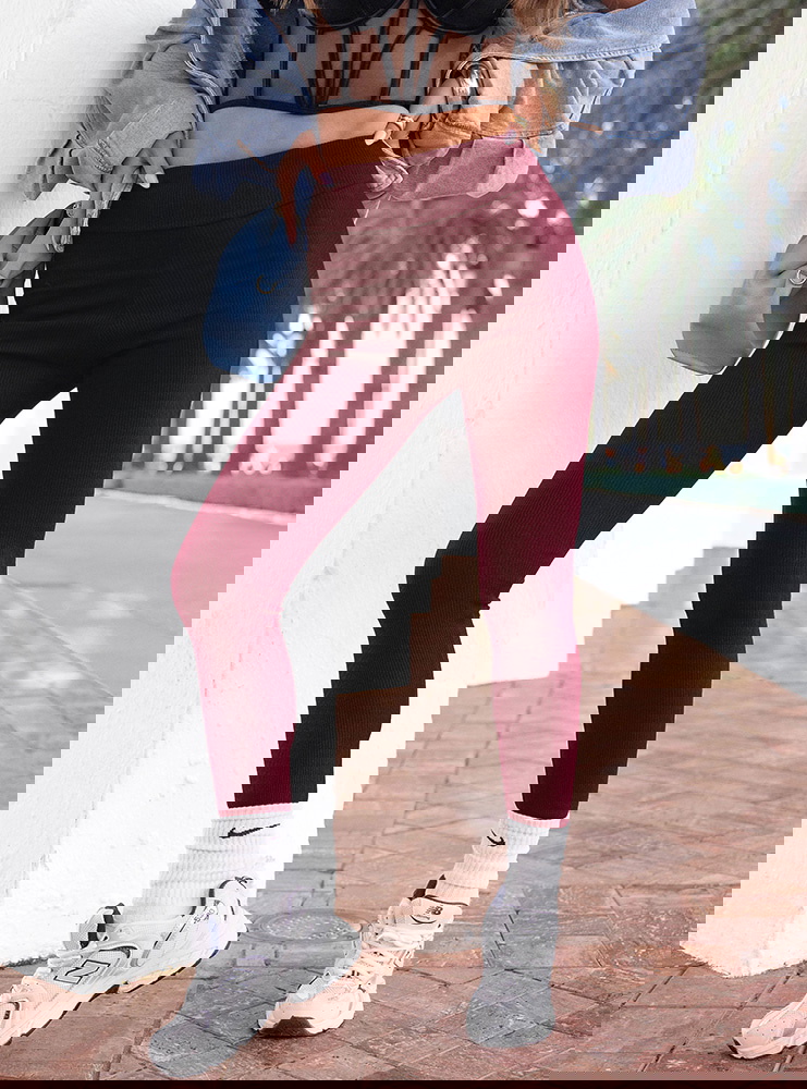 Bordowe prążkowane dopasowane legginsy Joyceline to model, który podkreśla sylwetkę i daje poczucie komfortu przez cały dzień. Wysoki, elastyczny pas dobrze przylega do talii i stabilnie utrzymuje legginsy na miejscu. Dopasowany fason akcentuje linię bioder oraz nóg, tworząc smukły efekt. Pionowe prążkowanie optycznie wydłuża nogi i nadaje całości bardziej uporządkowany wygląd. Bordowy kolor jest głęboki i wyrazisty, a jednocześnie łatwy do zestawienia z neutralnymi barwami. Materiał jest miękki, sprężysty i dopasowuje się do ruchu ciała. To model, który sprawdzi się zarówno w sportowych, jak i codziennych stylizacjach.