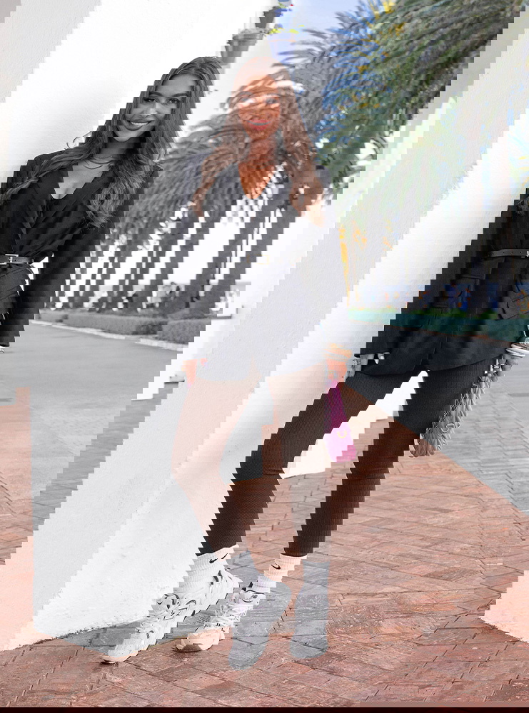 Na co dzień – z oversize’ową bluzą i sneakersami.