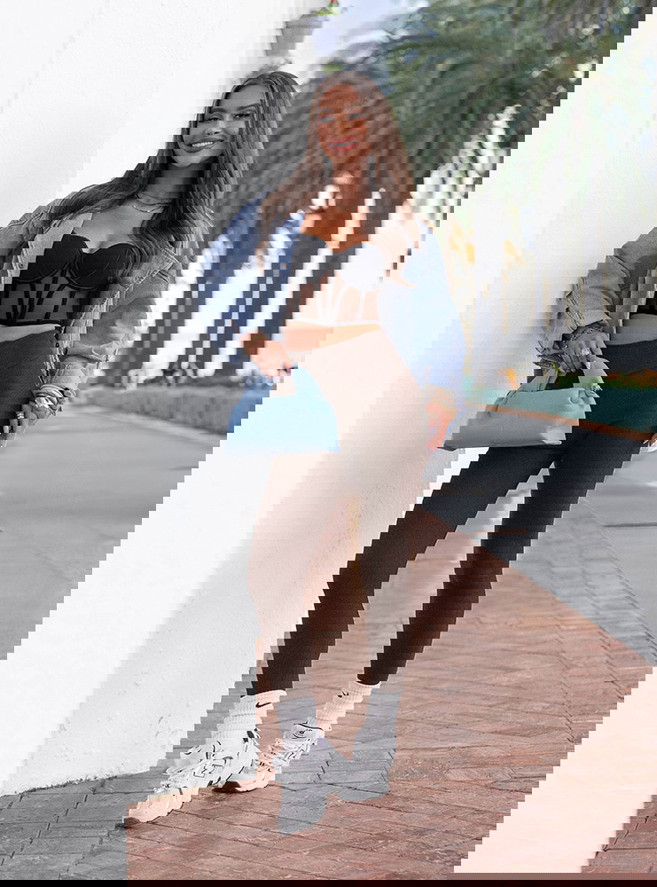 Modelka prezentuje produkty w rozmiarze XS