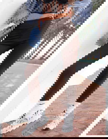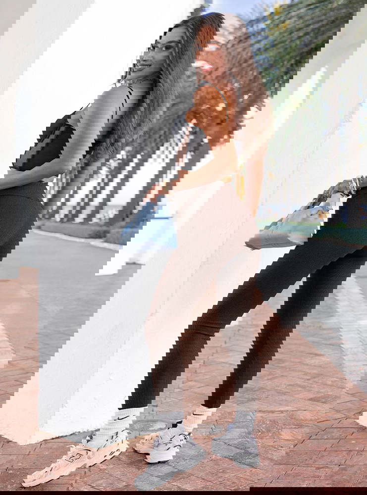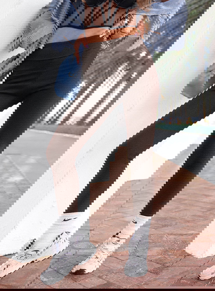 Dopasowany krój i prążkowana faktura sprawiają, że legginsy podkreślają sylwetkę, a jednocześnie zapewniają komfort przez cały dzień.