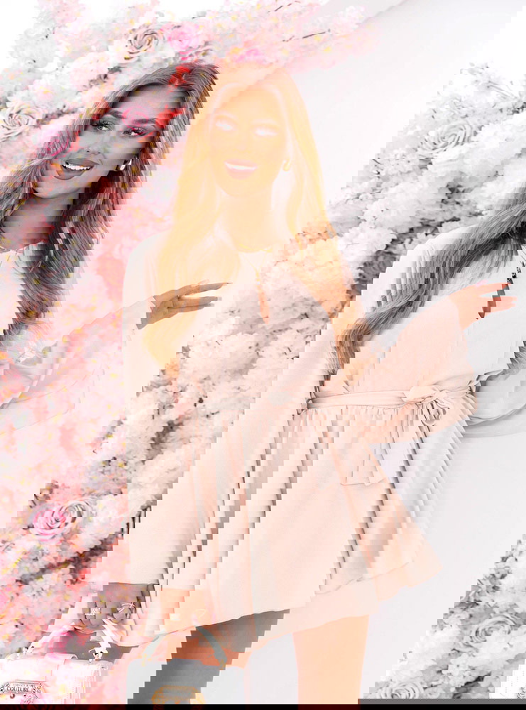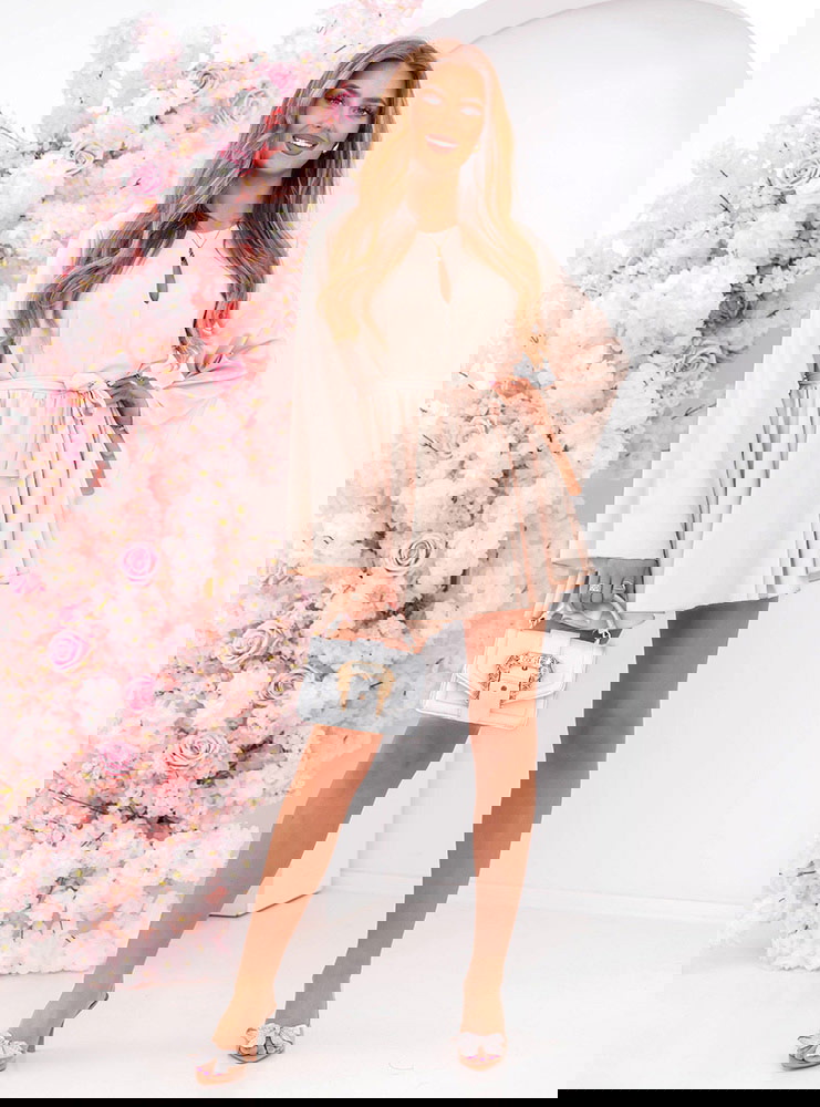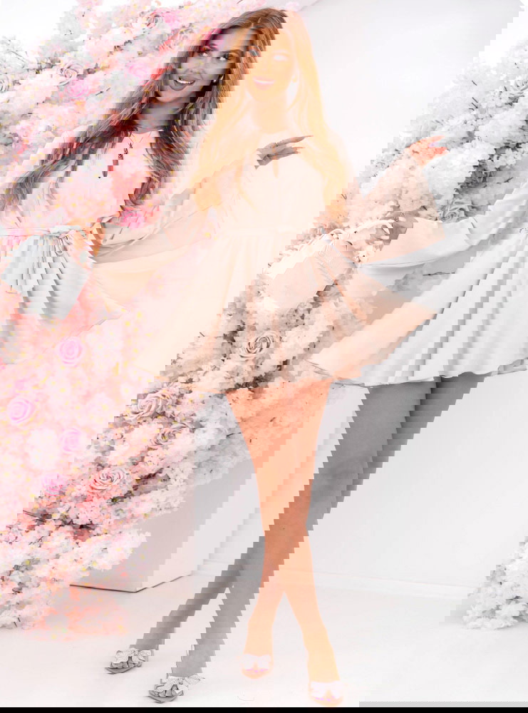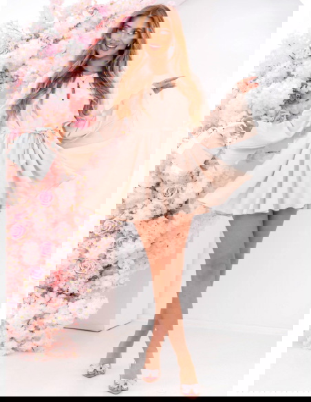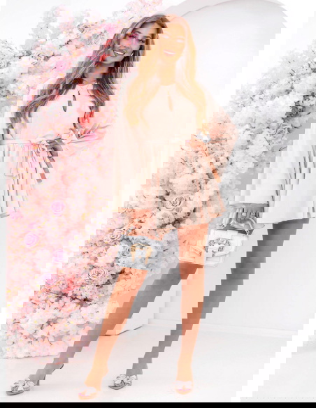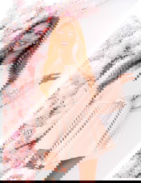 Jasnobeżowy kombinezon jak sukienka wiązany w talii Florene