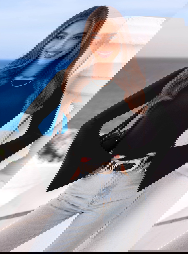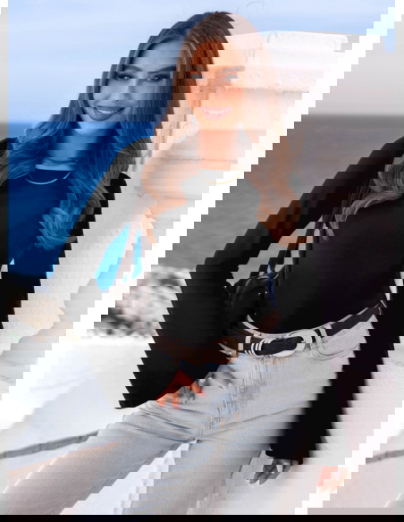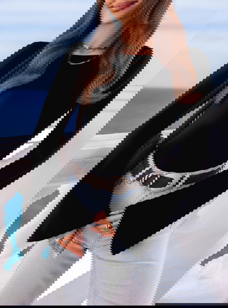 Na co dzień – z jasnymi jeansami i paskiem w talii.