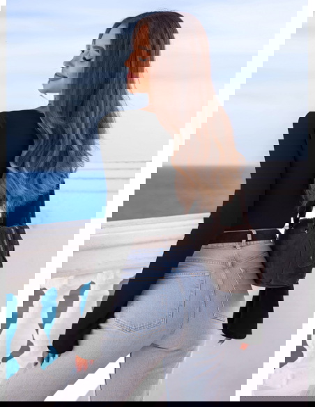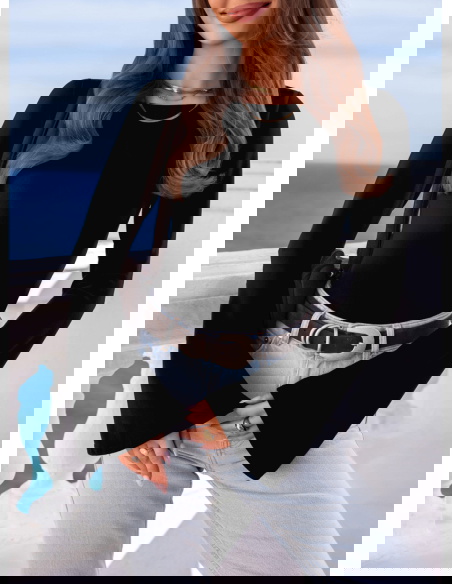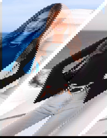 Dopasowany krój porządkuje proporcje i podkreśla linię talii. Szerokie rękawy optycznie wysmuklają ramiona i nadają sylwetce lekkości. Tkanina dobrze przylega do ciała, nie krępując ruchów. Czerń stanowi ponadczasową bazę, która pasuje do jeansów, spodni materiałowych czy spódnic. To bluzka, która sprawdzi się zarówno w codziennych, jak i bardziej dopracowanych zestawach.