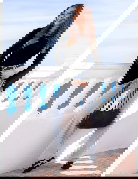 Na co dzień – z jasnymi jeansami i paskiem w talii.