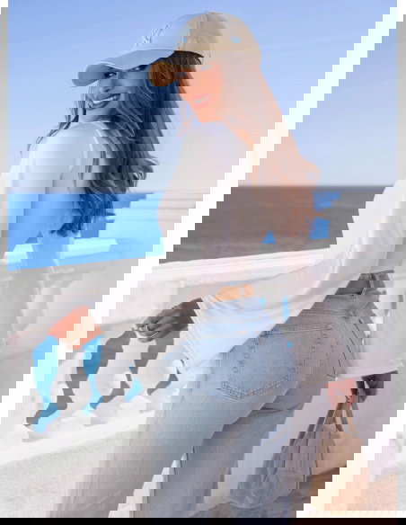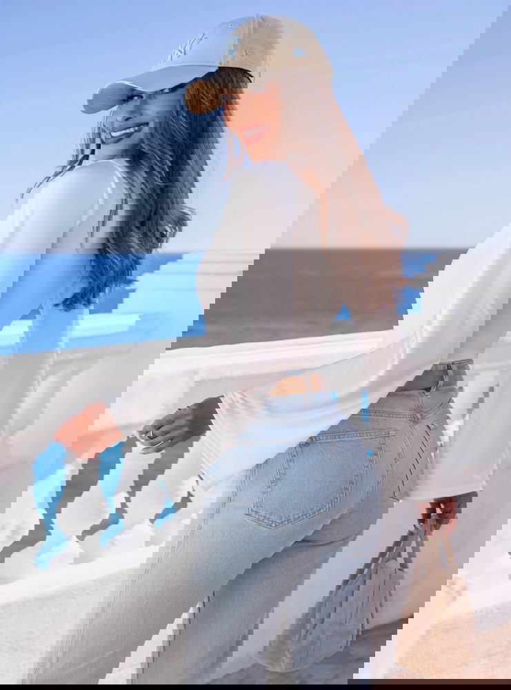 Tkanina jest przyjemna dla skóry i dobrze dopasowuje się do sylwetki, zachowując swój kształt. Rękawy efektownie układają się w ruchu, dodając stylizacji subtelnej dynamiki. Jasny odcień sprawia, że całość wygląda lekko i elegancko.