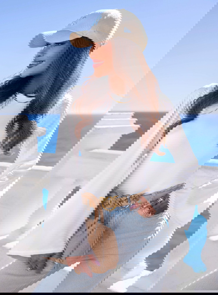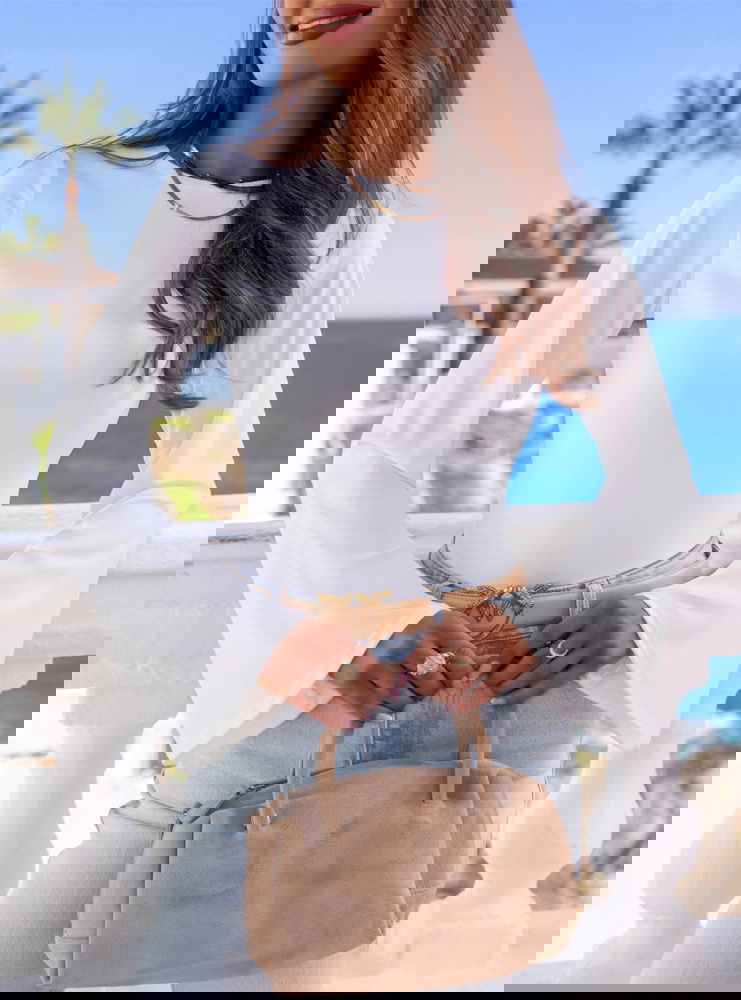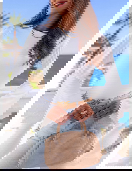 Szerokie rękawy i mleczna biel tworzą kobiecą, lekką bazę z eleganckim charakterem.