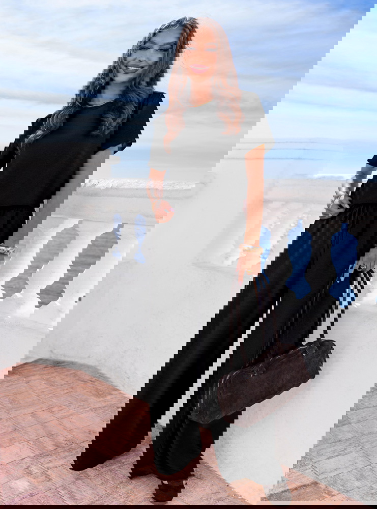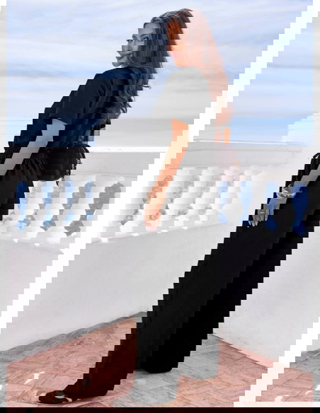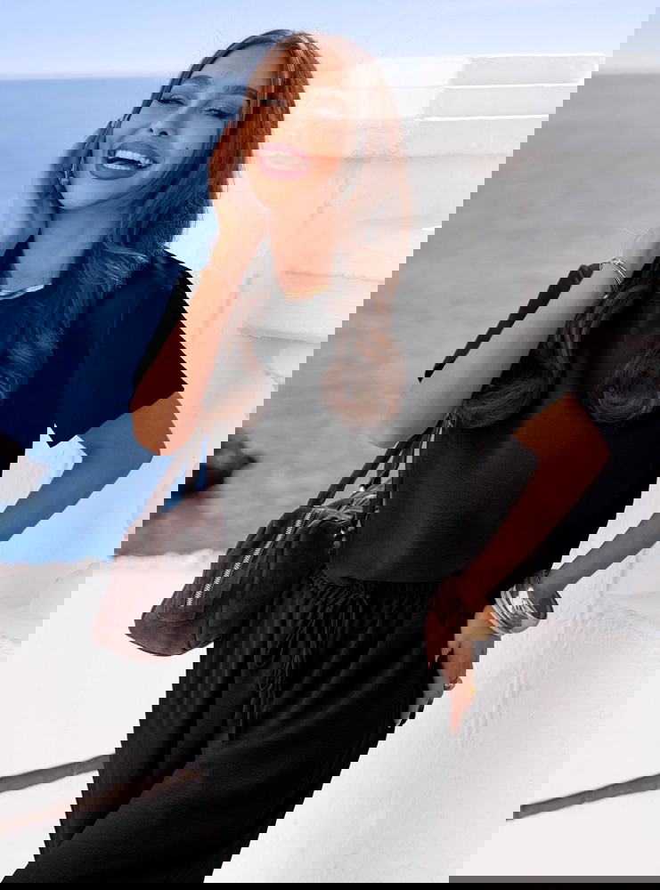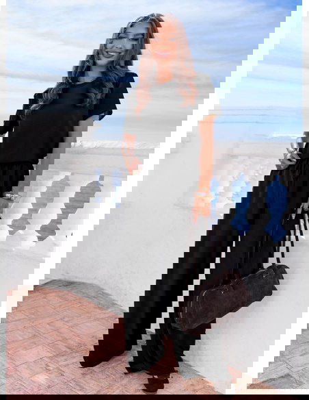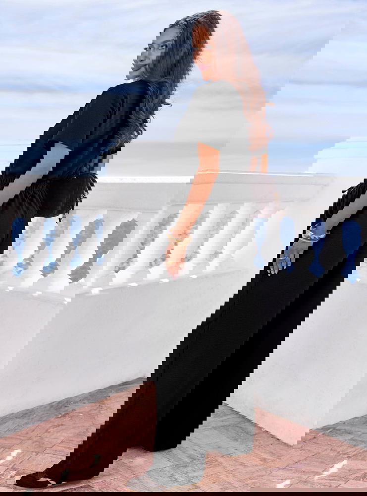 Czerń daje dużą swobodę w doborze dodatków. Możesz postawić na jasne akcesoria dla kontrastu albo wybrać total look w jednym kolorze z mocniejszą biżuterią. Elementy kompletu łatwo wykorzystasz też osobno w innych stylizacjach.