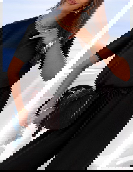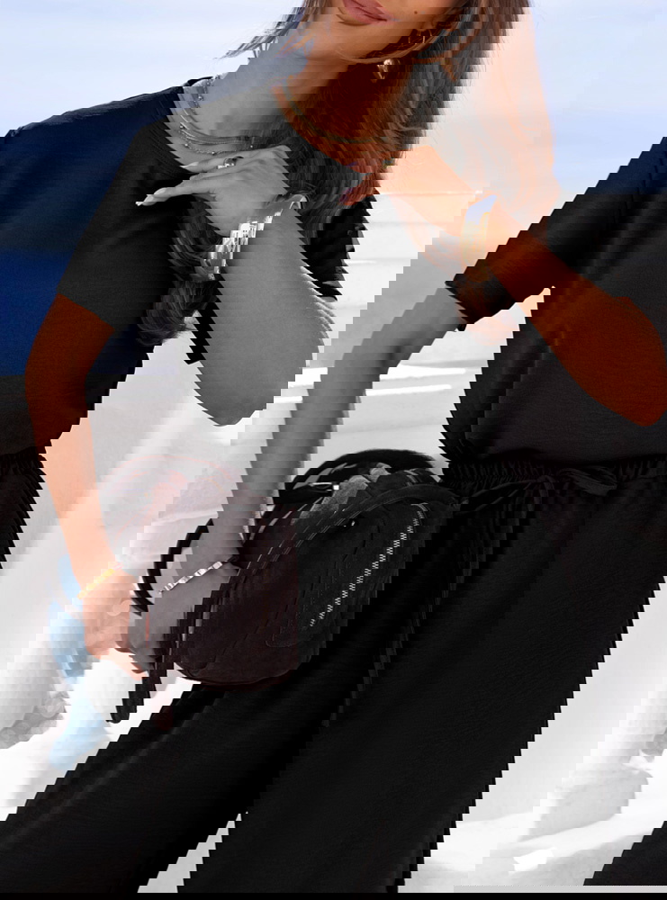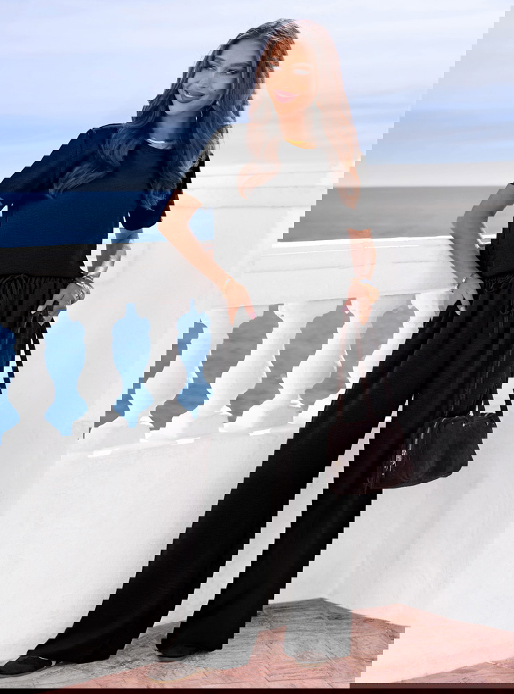 Czarny komplet bluzka z krótkim rękawem i szerokie spodnie Chardanae