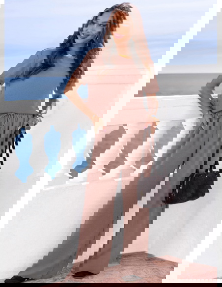 Komplet bluzka z krótkim rękawem i szerokie spodnie Chardanae - mocha mousse