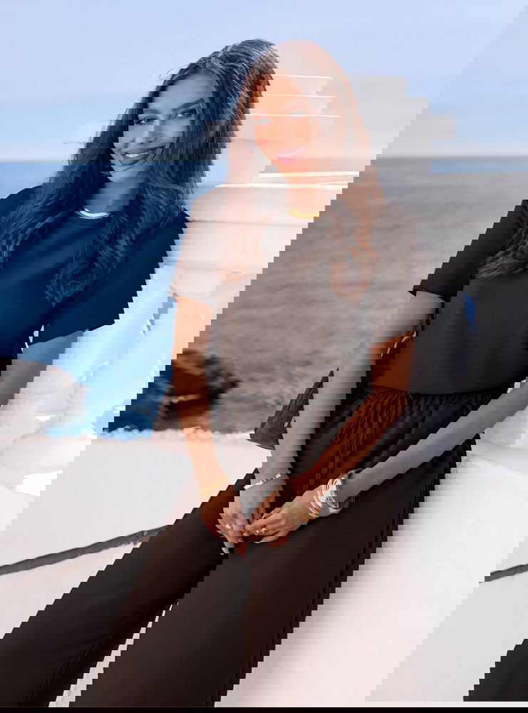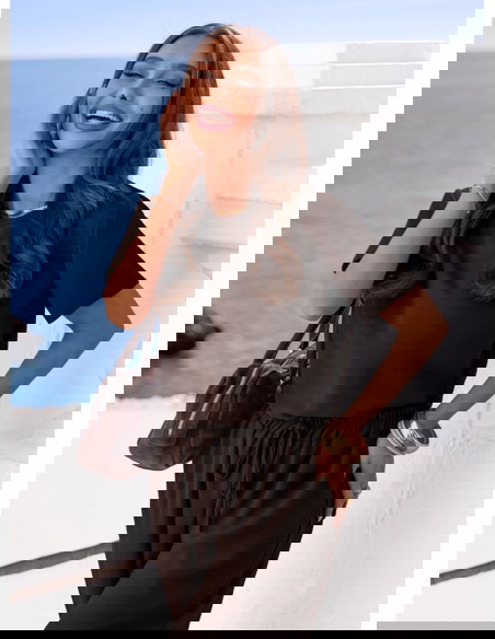 Czekolada świetnie łączy się z beżem, złotą biżuterią i jasnymi akcesoriami. Możesz nosić komplet razem albo zestawić bluzkę z jeansami, a spodnie z dopasowanym topem. To uniwersalna baza do codziennych i wyjazdowych stylizacji.