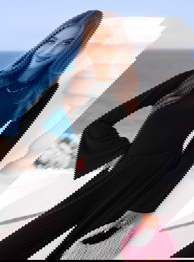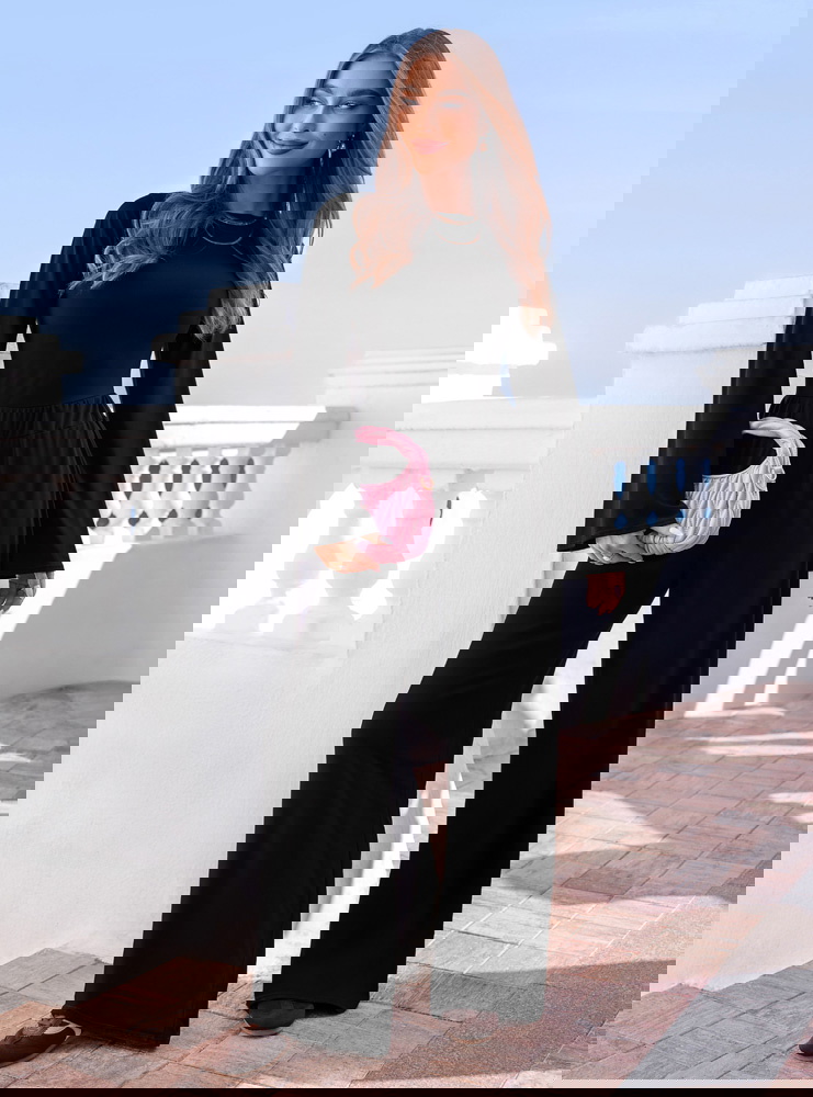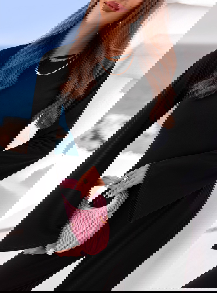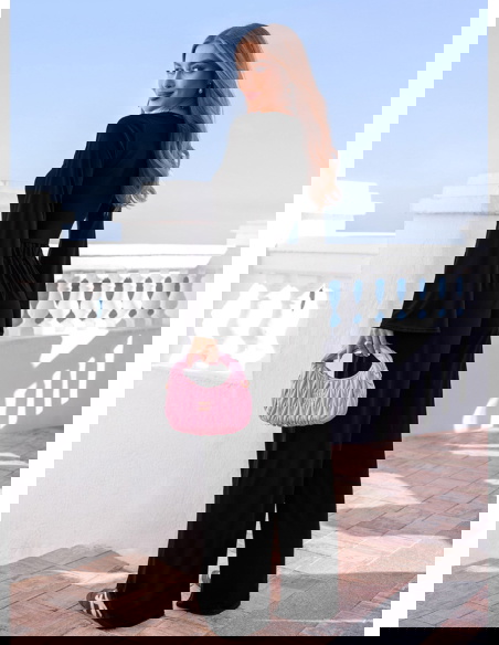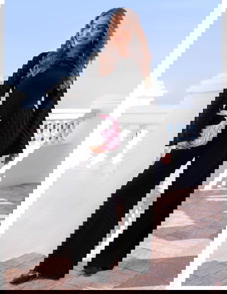 Czarny komplet szerokie spodnie i bluzka Diamante