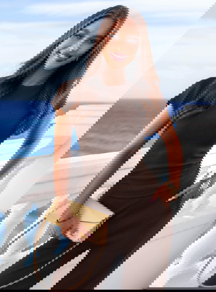 Komfortowy komplet w czekoladowym kolorze, który świetnie sprawdzi się w codziennych stylizacjach.
