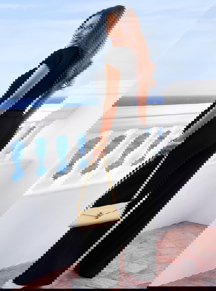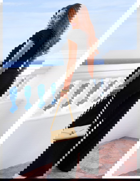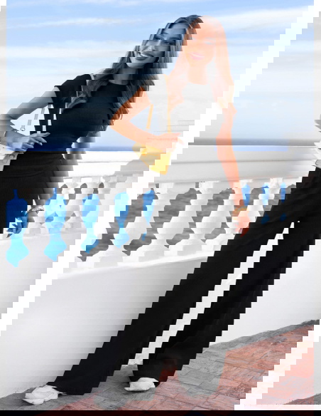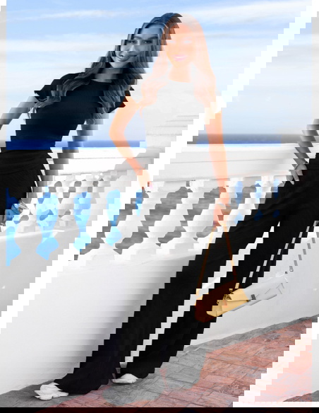 Czarny prążkowany komplet bluzka i szerokie spodnie Maertisa