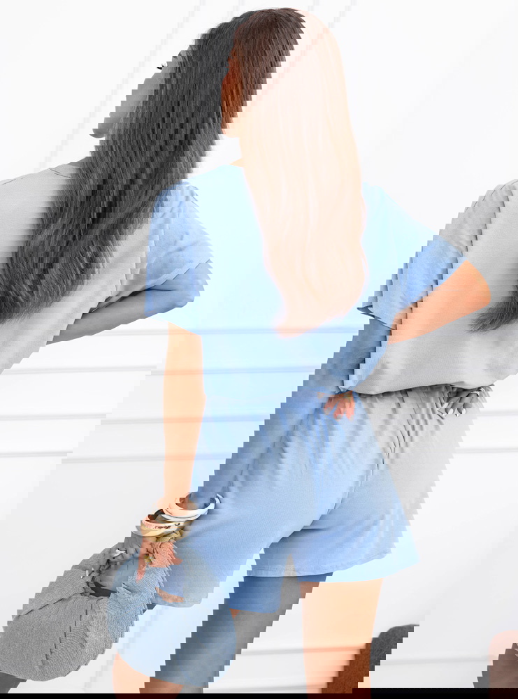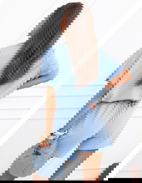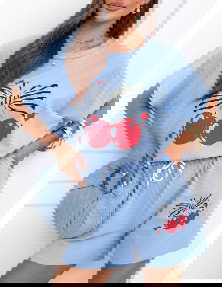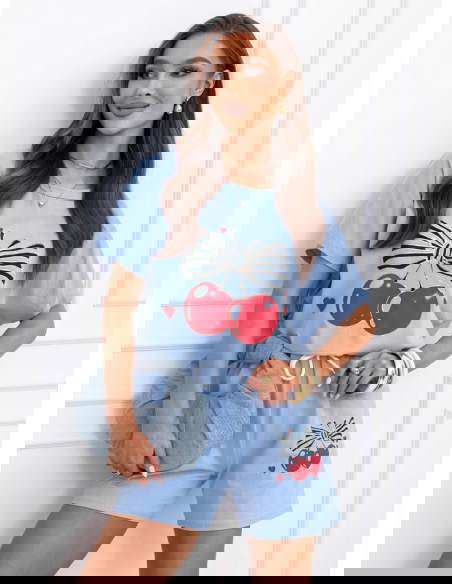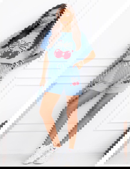 Błękitny komplet bluzka i krótkie spodenki Lamoyne