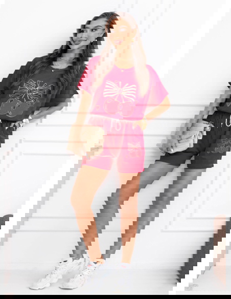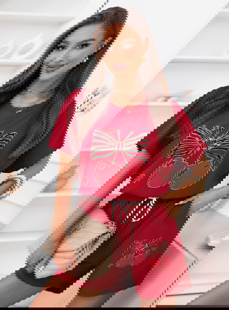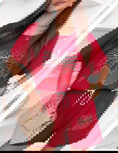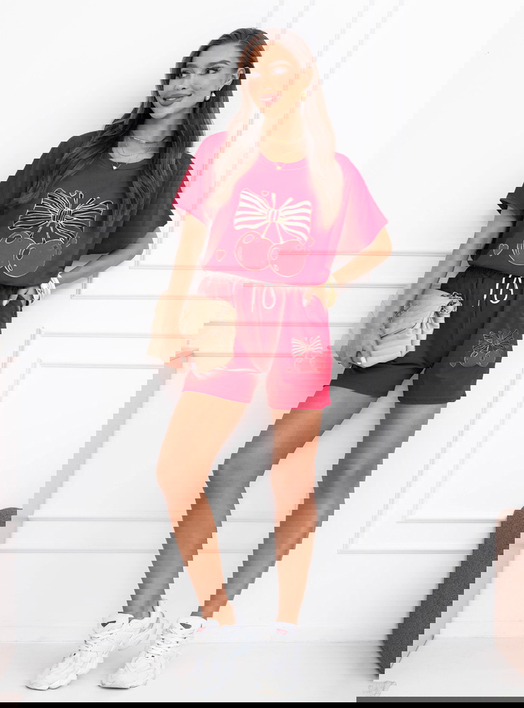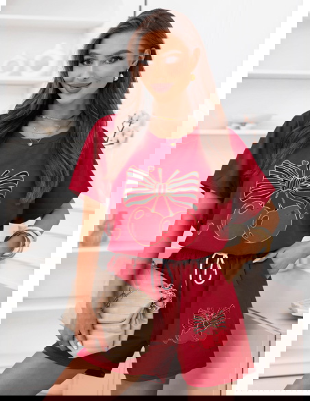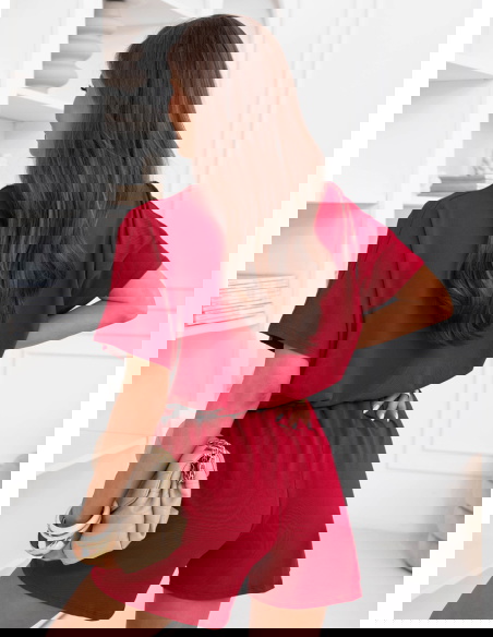 Malinowy komplet bluzka i krótkie spodenki Lamoyne