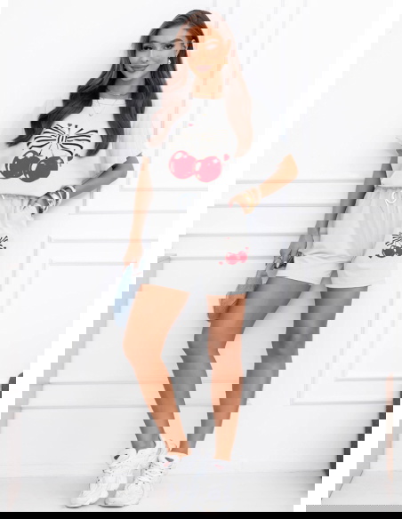 Biały komplet bluzka i krótkie spodenki Lamoyne