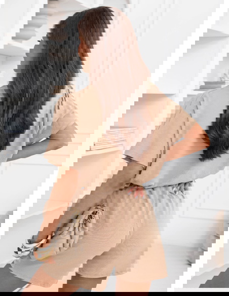 Beżowy komplet bluzka i krótkie spodenki Lamoyne