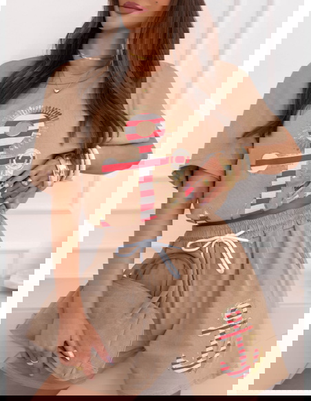 Komplet bluzka i spodenki Joellianee - mocha mousse