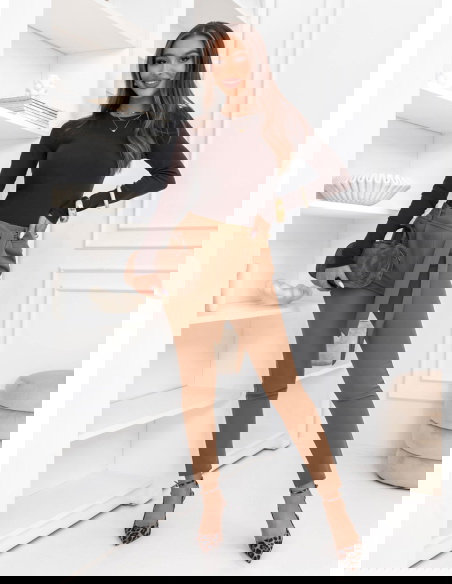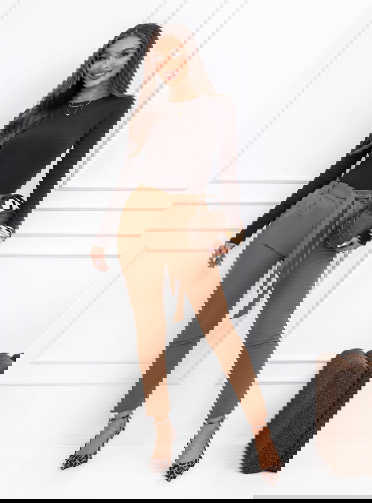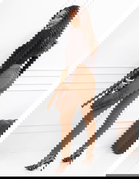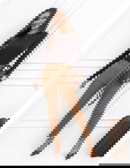 Spodnie z paskiem Amparol – mocha mousse to elegancki model, który świetnie sprawdzi się w wielu stylizacjach. Dopasowany krój ładnie podkreśla sylwetkę, a wysoki stan optycznie wydłuża nogi. W talii znajduje się materiałowy pasek do wiązania, który pozwala podkreślić talię i nadaje całości stylowego charakteru. Gładki materiał sprawia, że spodnie prezentują się bardzo schludnie i dobrze układają się na figurze. Zwężane nogawki zakończone przed kostką dodają lekkości i nowoczesnego wyglądu. Kolor mocha mousse jest ponadczasowy i łatwo dopasować go do wielu elementów garderoby. To model, który sprawdzi się zarówno w codziennych, jak i bardziej eleganckich zestawach.