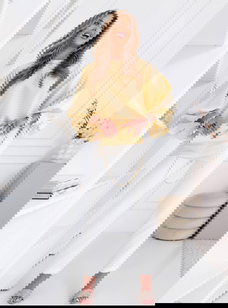 Bluzka z bufiastymi rękawami Perthanne – masełkowa to stylowa propozycja, która łączy elegancję z delikatnym, kobiecym charakterem. Luźniejszy fason sprawia, że model pięknie układa się na sylwetce i zapewnia komfort noszenia. Bufiaste rękawy dodają całości modowego wyrazu i subtelnej lekkości. Prosty dekolt sprawia, że bluzka wygląda elegancko i ponadczasowo. Delikatny materiał przyjemnie otula sylwetkę i dobrze się układa. Masełkowy kolor nadaje stylizacji świeżości i subtelnego uroku. To model, który łatwo dopasować zarówno do codziennych, jak i bardziej eleganckich stylizacji.