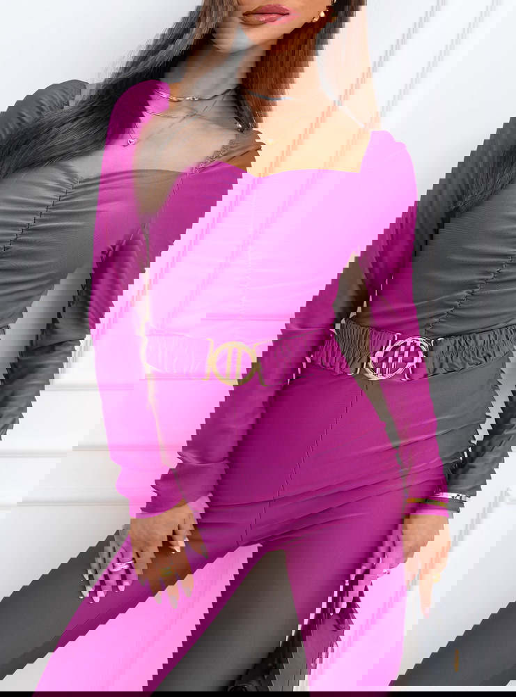 Fioletowy kombinezon z ozdobnym paskiem Madilynn