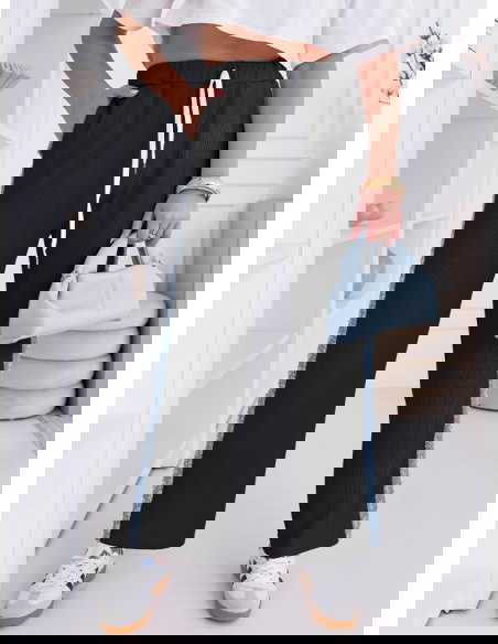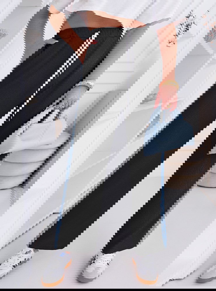 Czarny kolor i ozdobne lampasy tworzą połączenie, które sprawia, że spodnie są jednocześnie wygodne i bardzo stylowe.
