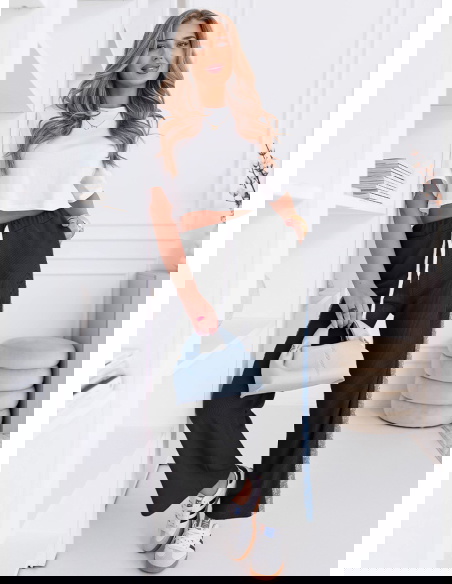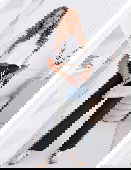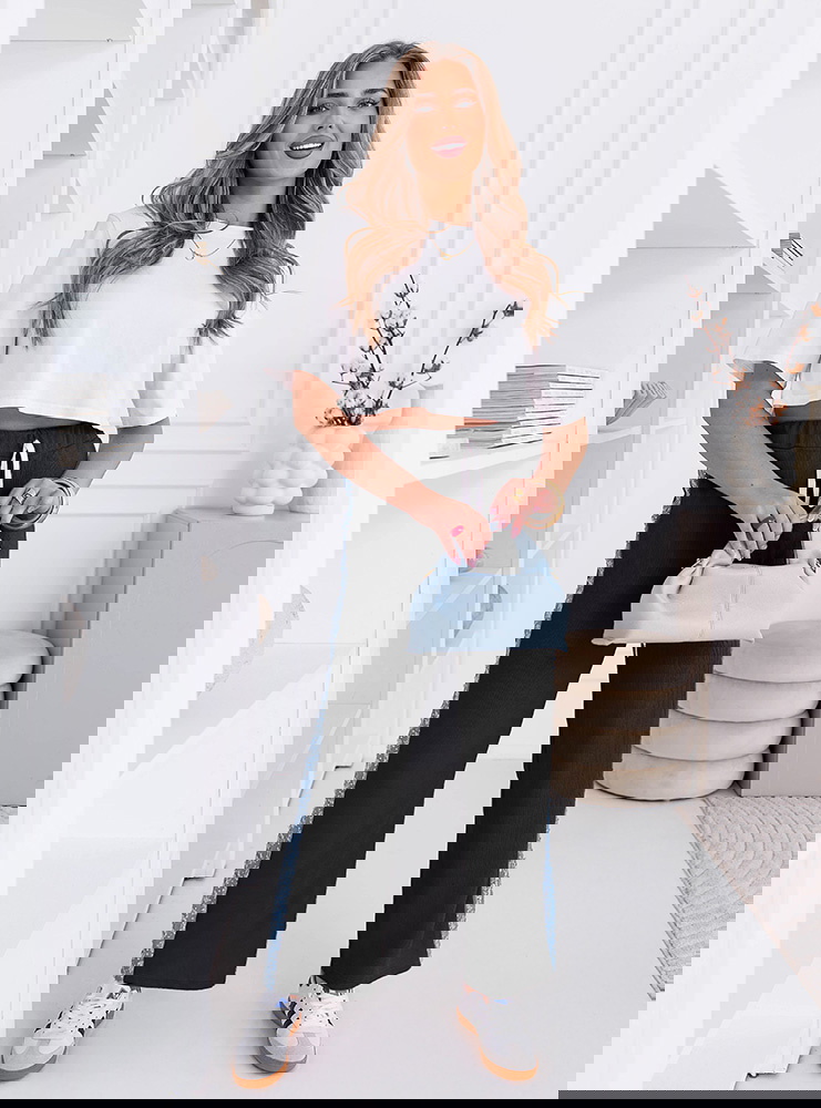 Czarne spodnie z ozdobnymi lampasami Cernise to model, który łączy wygodny fason z modnym detalem. Klasyczny czarny kolor sprawia, że spodnie są uniwersalne i łatwo dopasować je do wielu stylizacji. Prosty, swobodny krój oraz lekko rozszerzane nogawki sprawiają, że całość wygląda lekko i nowocześnie. Elastyczny pas z wiązaniem pozwala dobrze dopasować spodnie w talii i zwiększa komfort noszenia. Po bokach znajdują się ozdobne lampasy z delikatnym wzorem, które przełamują minimalistyczny charakter modelu. Ten element dodaje stylizacji wyrazistości i sprawia, że spodnie wyglądają bardziej oryginalnie. Materiał jest miękki i przyjemny w noszeniu, dlatego model świetnie sprawdzi się przez cały dzień. To spodnie, które łączą casualową wygodę z modnym akcentem.