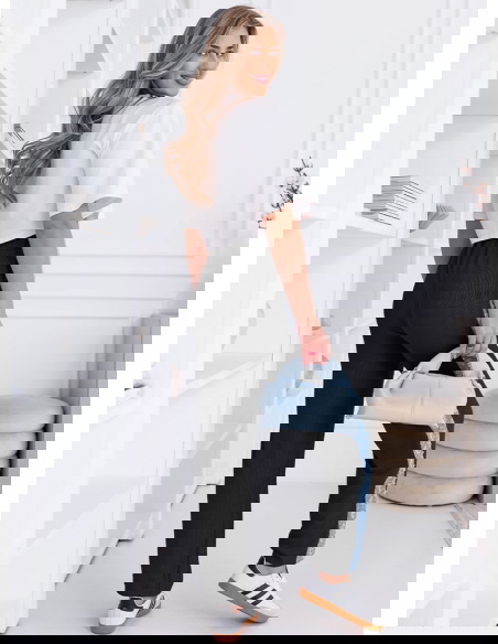 Czarny kolor daje wiele możliwości stylizacyjnych. Spodnie dobrze wyglądają zarówno w prostych, codziennych zestawach, jak i w bardziej dopracowanych stylizacjach. To model, który bez problemu dopasujesz do wielu okazji.