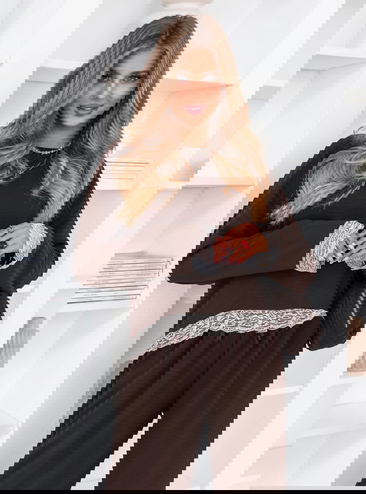 Czekoladowy kolor dodaje stylizacji wyrazistości i sprawia, że komplet wygląda bardzo szlachetnie. Koronka wprowadza subtelny kontrast i podkreśla kobiecy charakter modelu. To zestaw, który sam w sobie tworzy dopracowaną stylizację.