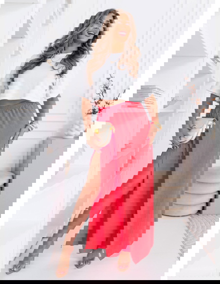 Koralowe spodnie z rozcięciami Laurasia