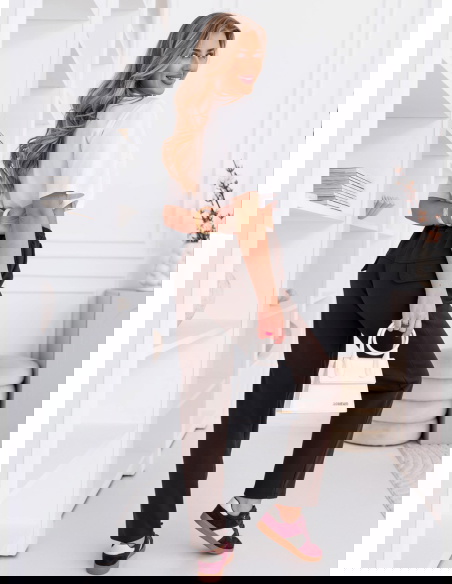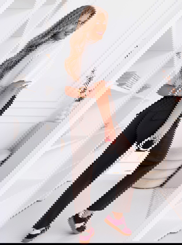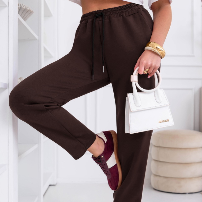 Czekoladowy kolor dobrze łączy się z jasnymi elementami garderoby, tworząc kontrastową stylizację. Spodnie można łatwo zestawić z T-shirtem, bluzką lub lekką marynarką. To wygodna baza wielu codziennych zestawów.