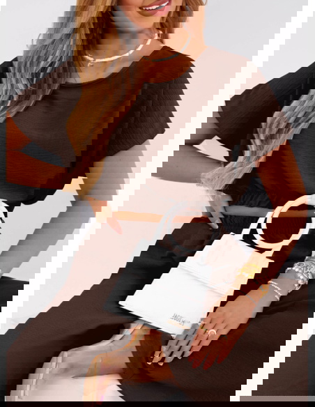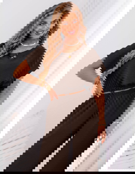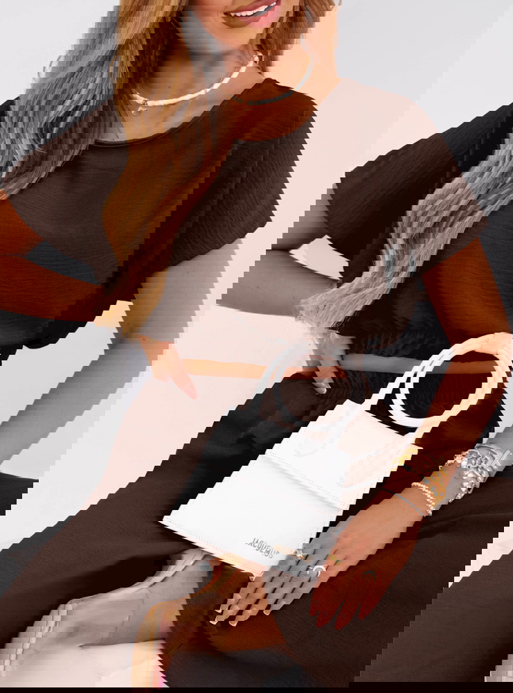 Czekoladowy kolor sprawia, że komplet wygląda bardzo elegancko, a jednocześnie pozostaje uniwersalny. Można go łatwo zestawić z różnymi dodatkami i stworzyć stylizację na wiele okazji. To wygodna alternatywa dla sukienki lub klasycznego zestawu z bluzką i spodniami.