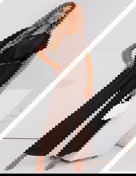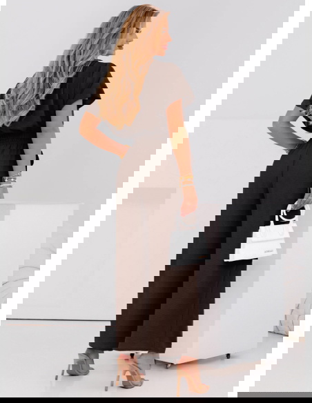 Czekoladowy komplet bluzka i szerokie spodnie Loila