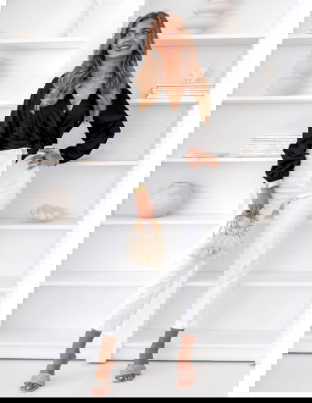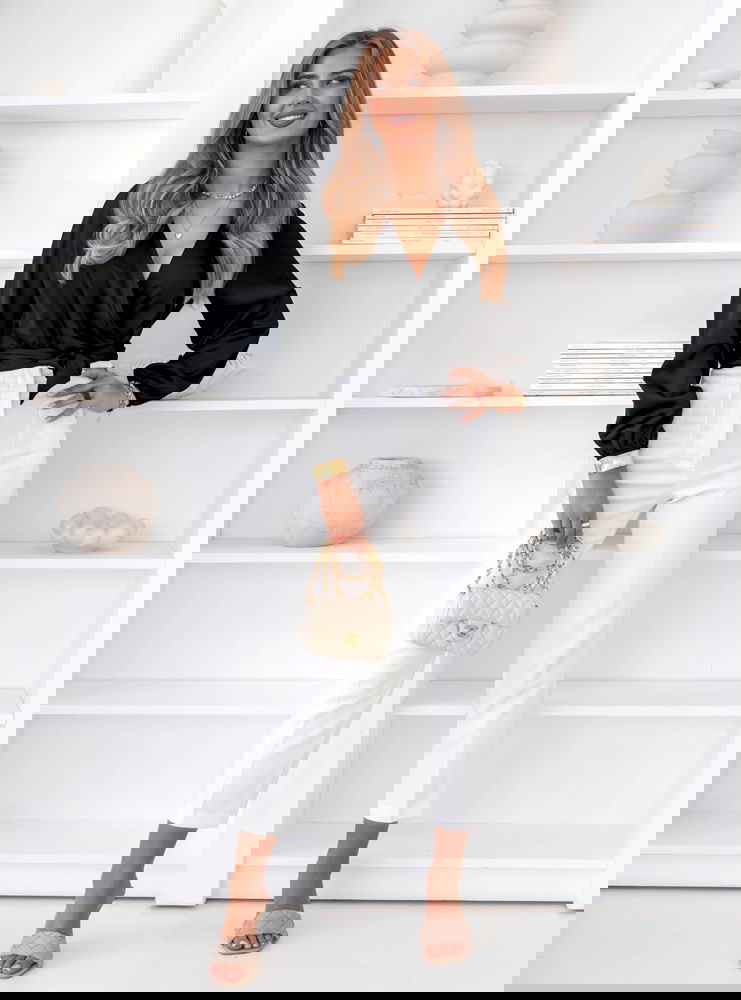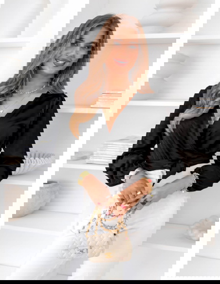 Czarna satynowa bluzka z wiązaniem Saundraa