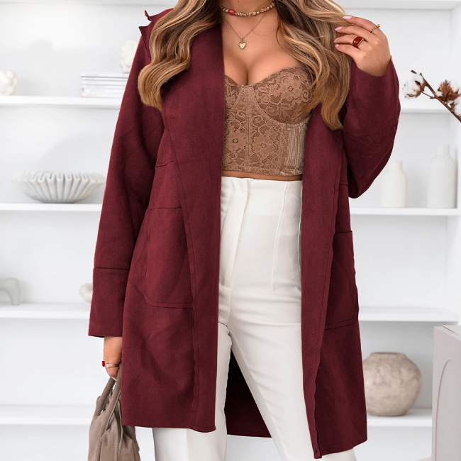 Bordowy lekki płaszczyk z kieszeniami Claresta