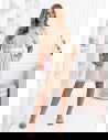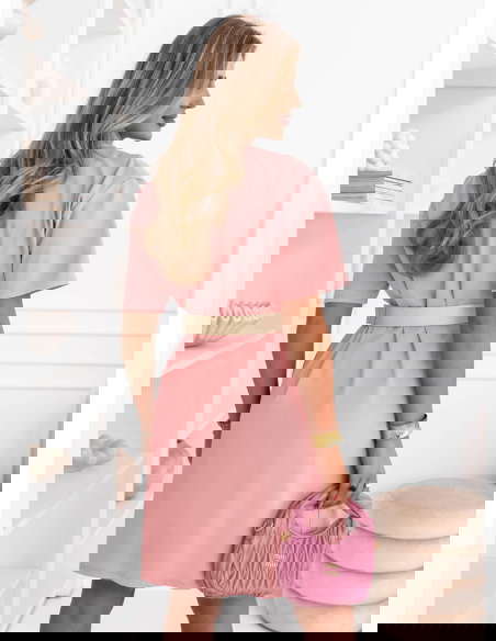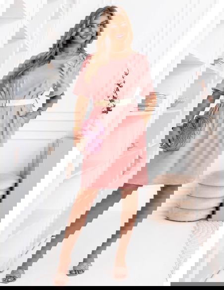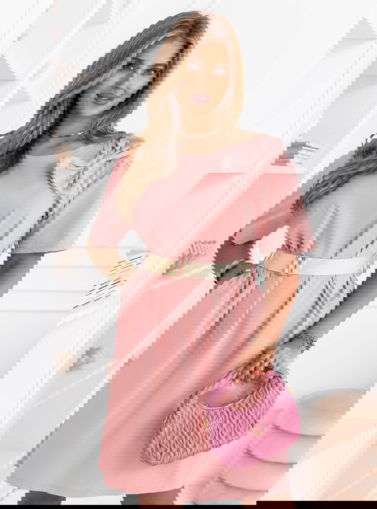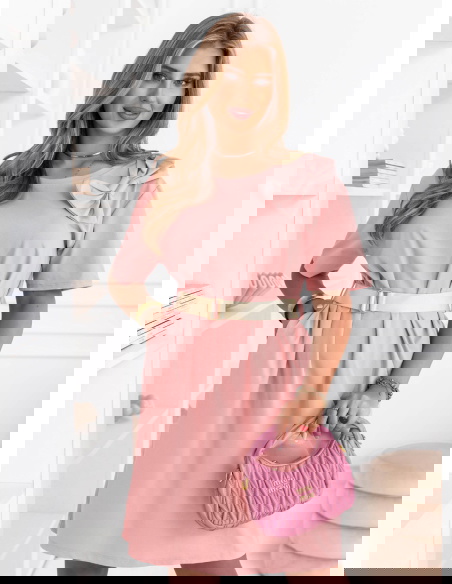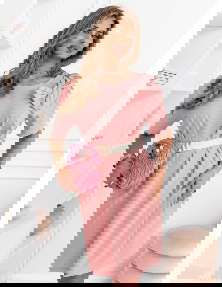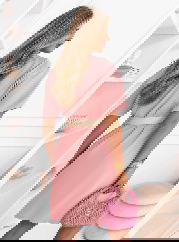 Pudrowa sukienka mini z paskiem Maudella
