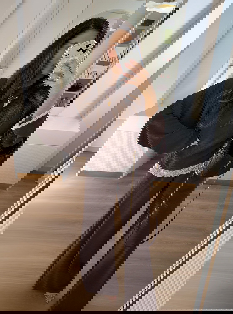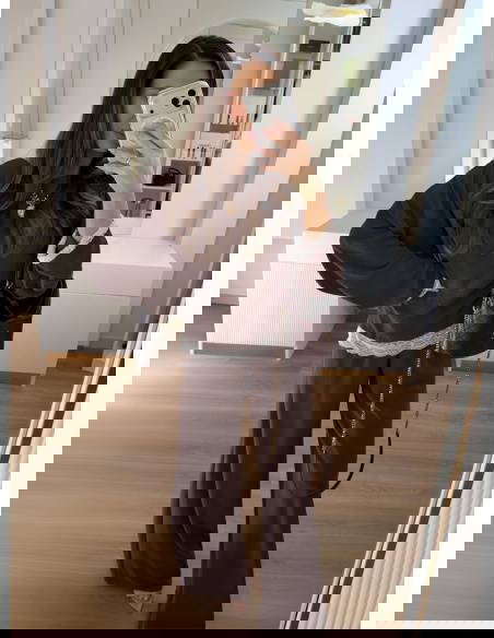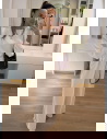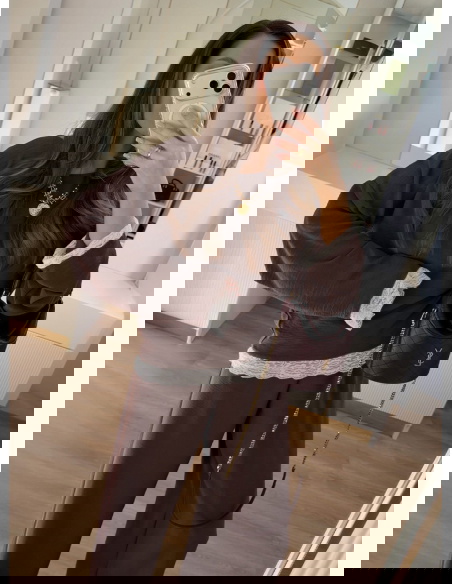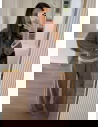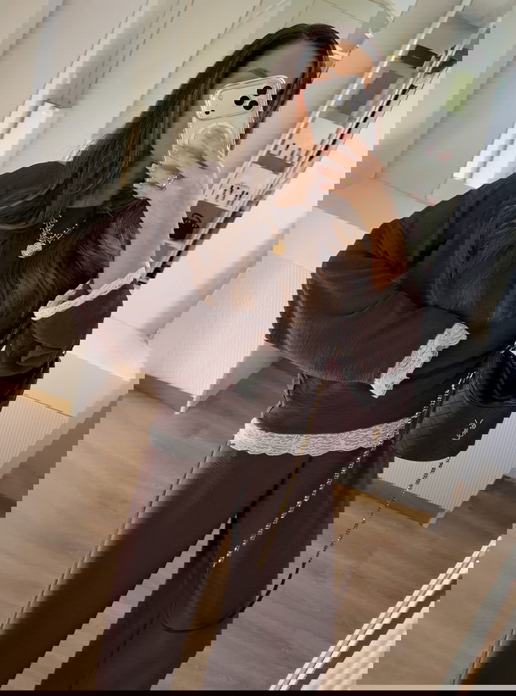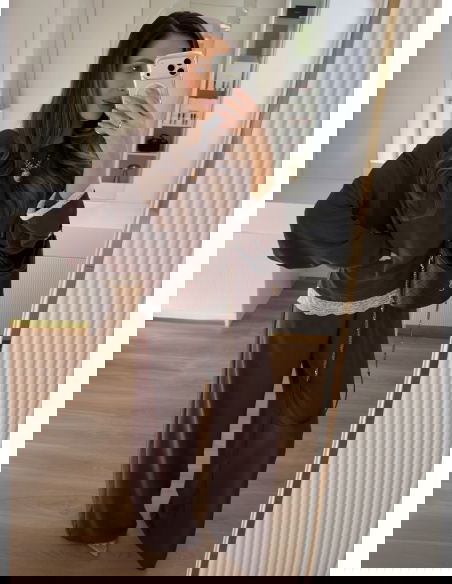Czekoladowy komplet z koronkowymi wstawkami bluzka i szerokie spodnie Maevenye