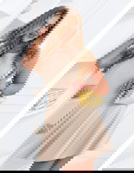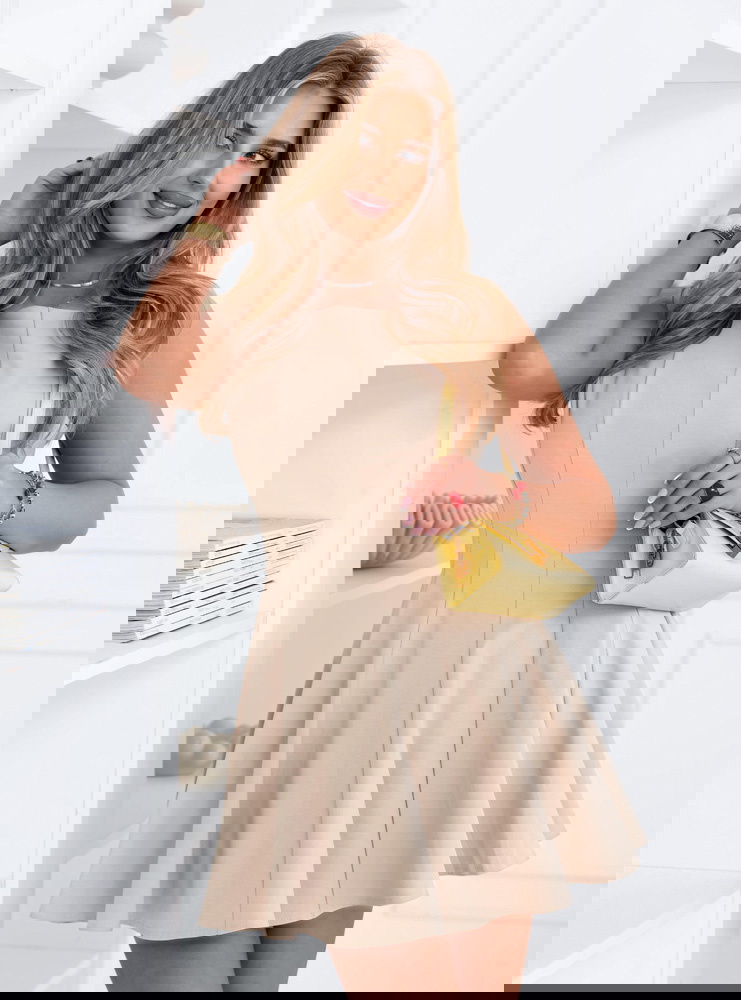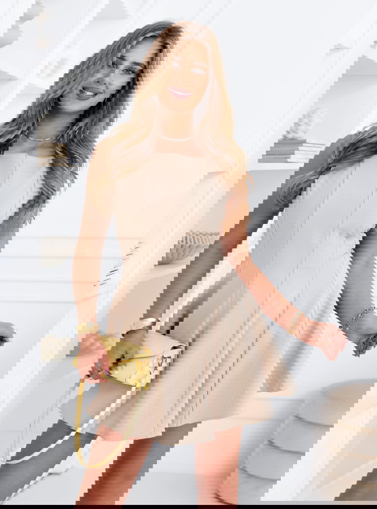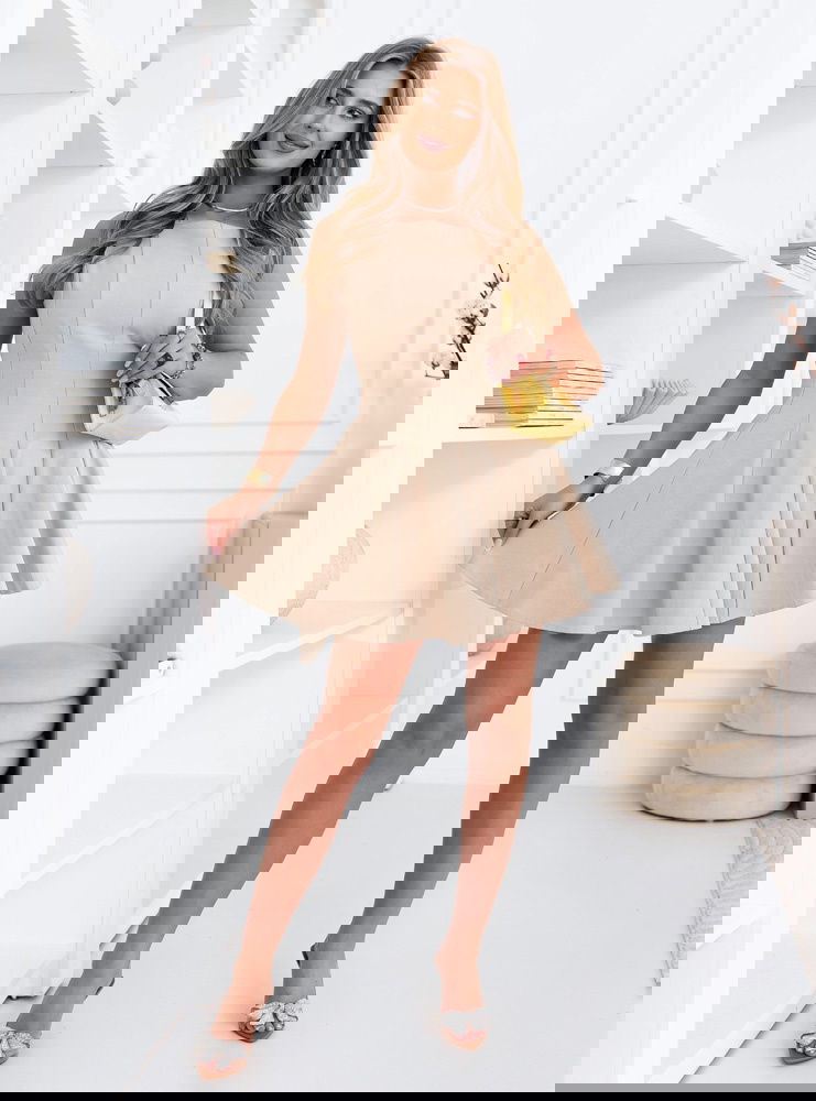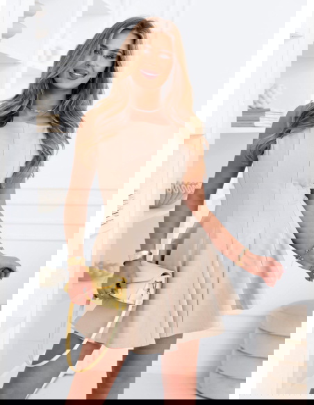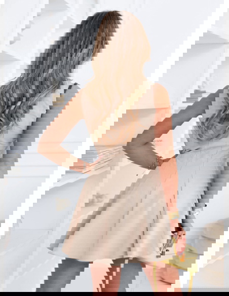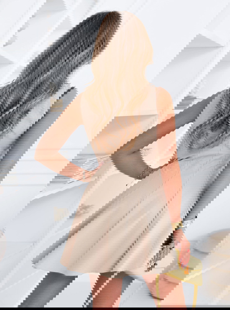 Jasnobeżowa rozkloszowana sukienka mini Leonesse