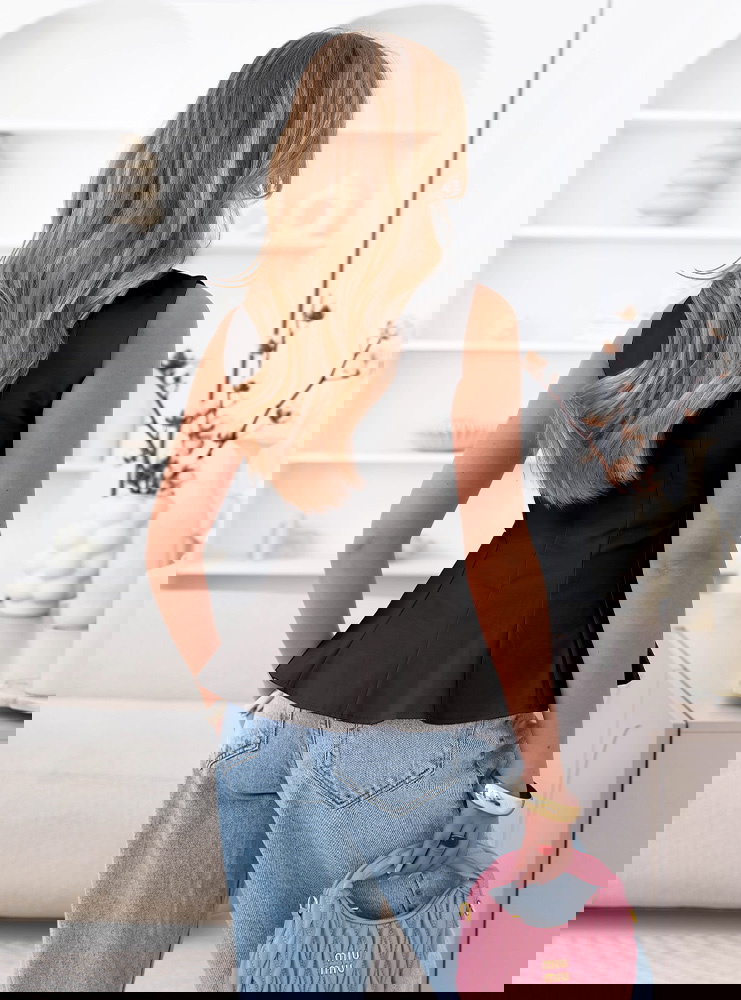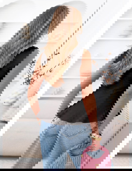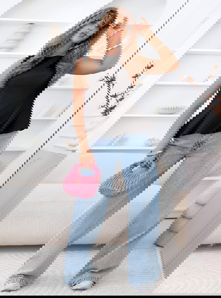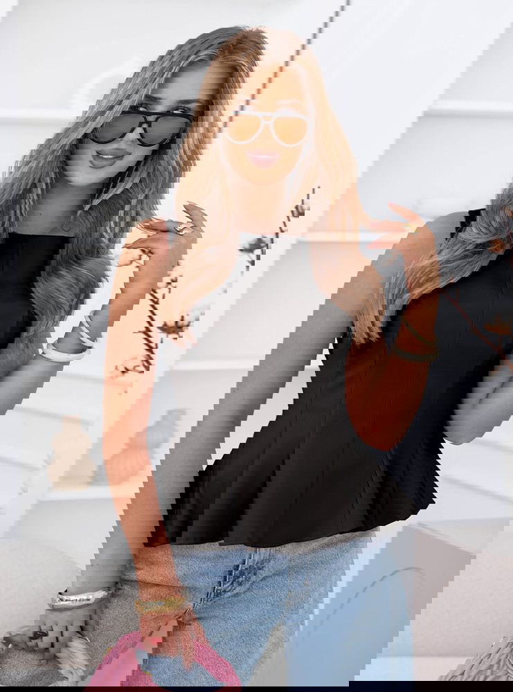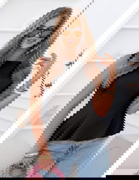 Czarna dopasowana bluzka z rozkloszowanym dołem Ravenlye